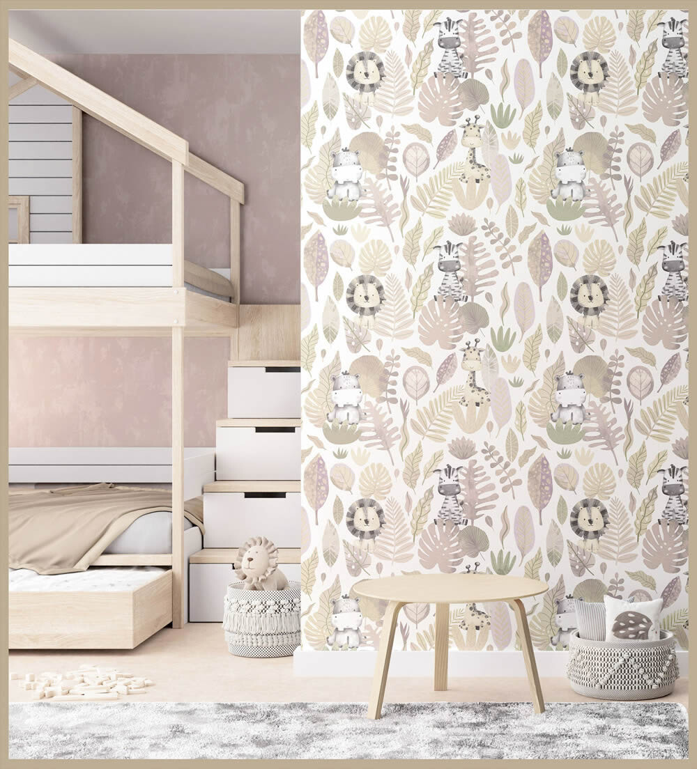 Unabhängig, ob es sich um Jungen oder Mädchen handelt, übt die Tierwelt eine faszinierende Anziehungskraft auf alle Kinder aus. Eine Kindertapete mit Waldtieren, Zootieren oder Tapeten mit Safaritieren bringen eine ansteckende Freude in den Kleinen hervor, wenn ihr eigenes Zimmer in einen wilden Dschungel, einen Zoo oder sogar einen aufregenden Bauernhof verwandelt wird. Wilde Tiger, flauschige Hasen, niedliche Mäuse oder gigantische Dinosaurier – es gibt für jedes Kind die passende Tapete. Es bleiben keine Kinderwünsche unerfüllt.