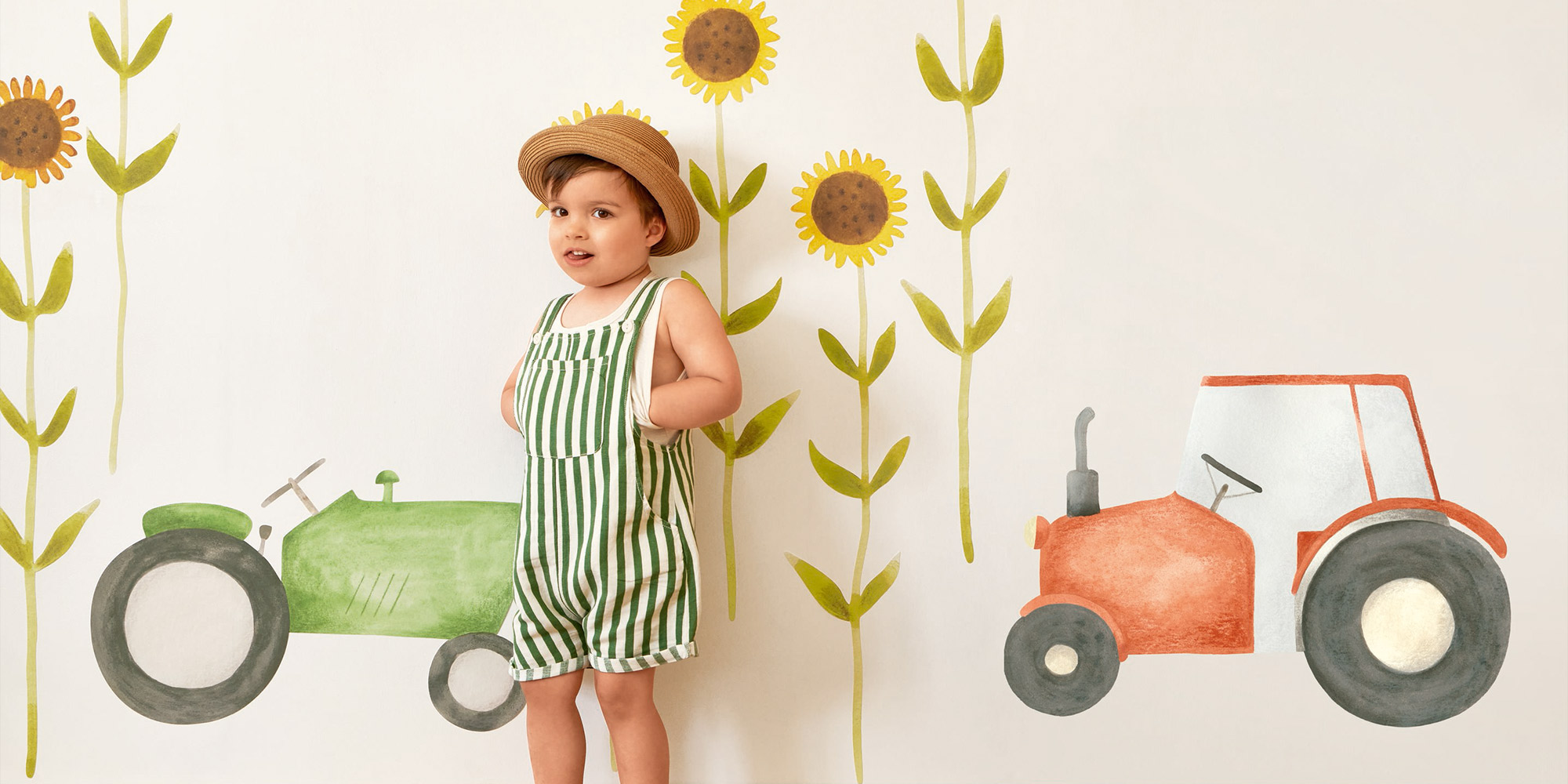 Wir präsentieren individuelle Kinderzimmer Gestaltungsideen mit Kindertapeten, Borten, Stickern und Wandtattoos, Wandbildern, Fototapeten und Gardinen- und Dekostoffen – und alles kann ganz bequem online bestellt werden. In unserem Onlineshop bieten wir für jede Altersgruppe passende Raumvorschläge, egal ob für Jungen, Mädchen oder auch geschlechtsneutrale Tapeten und sowohl für Babys, Minis, Kids und Teenies.