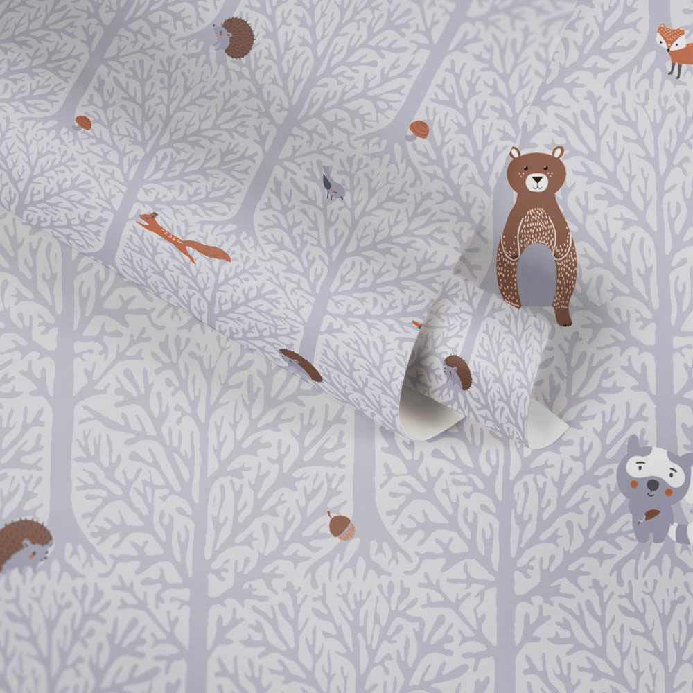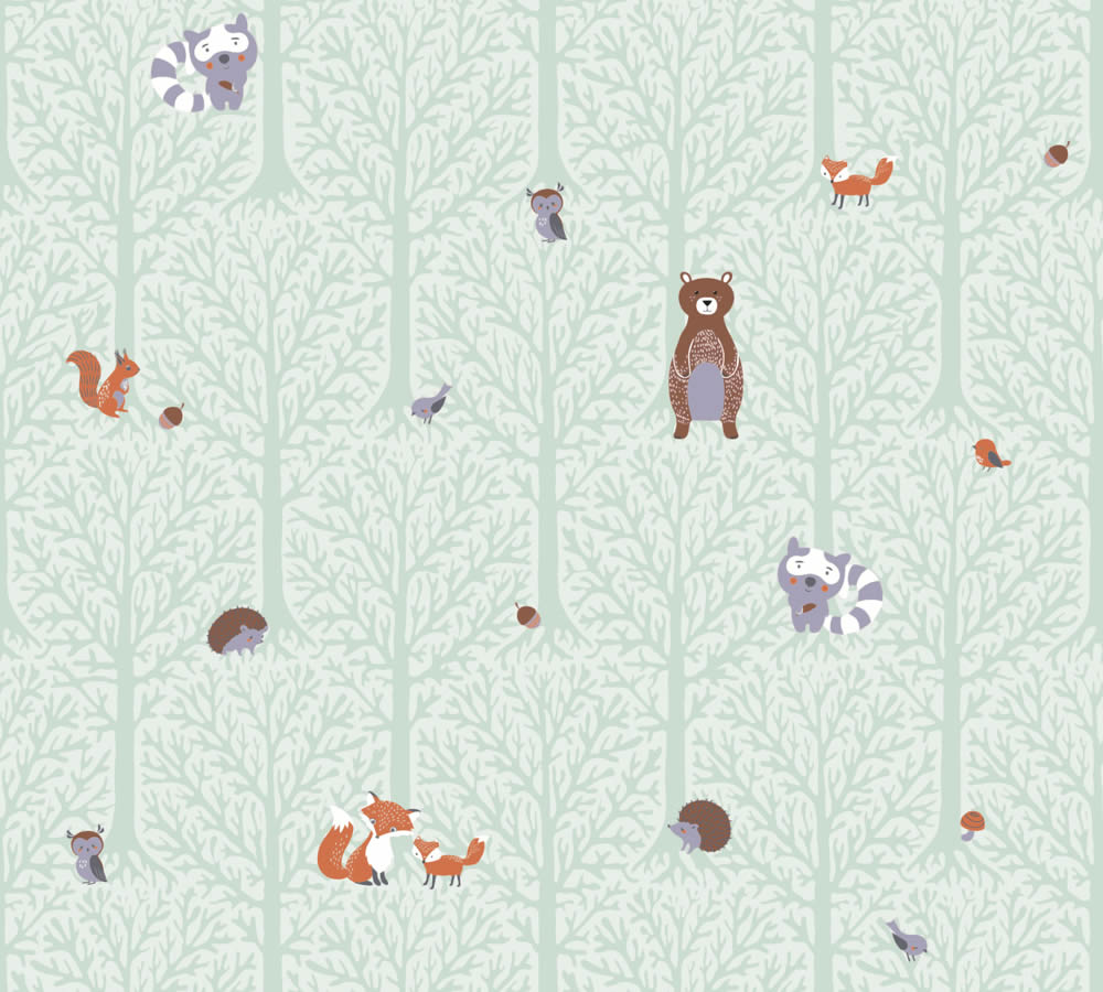 Produktinformationen "Graublaue Vliestapete Tiere im Wald Little Love AS Creation 381191"