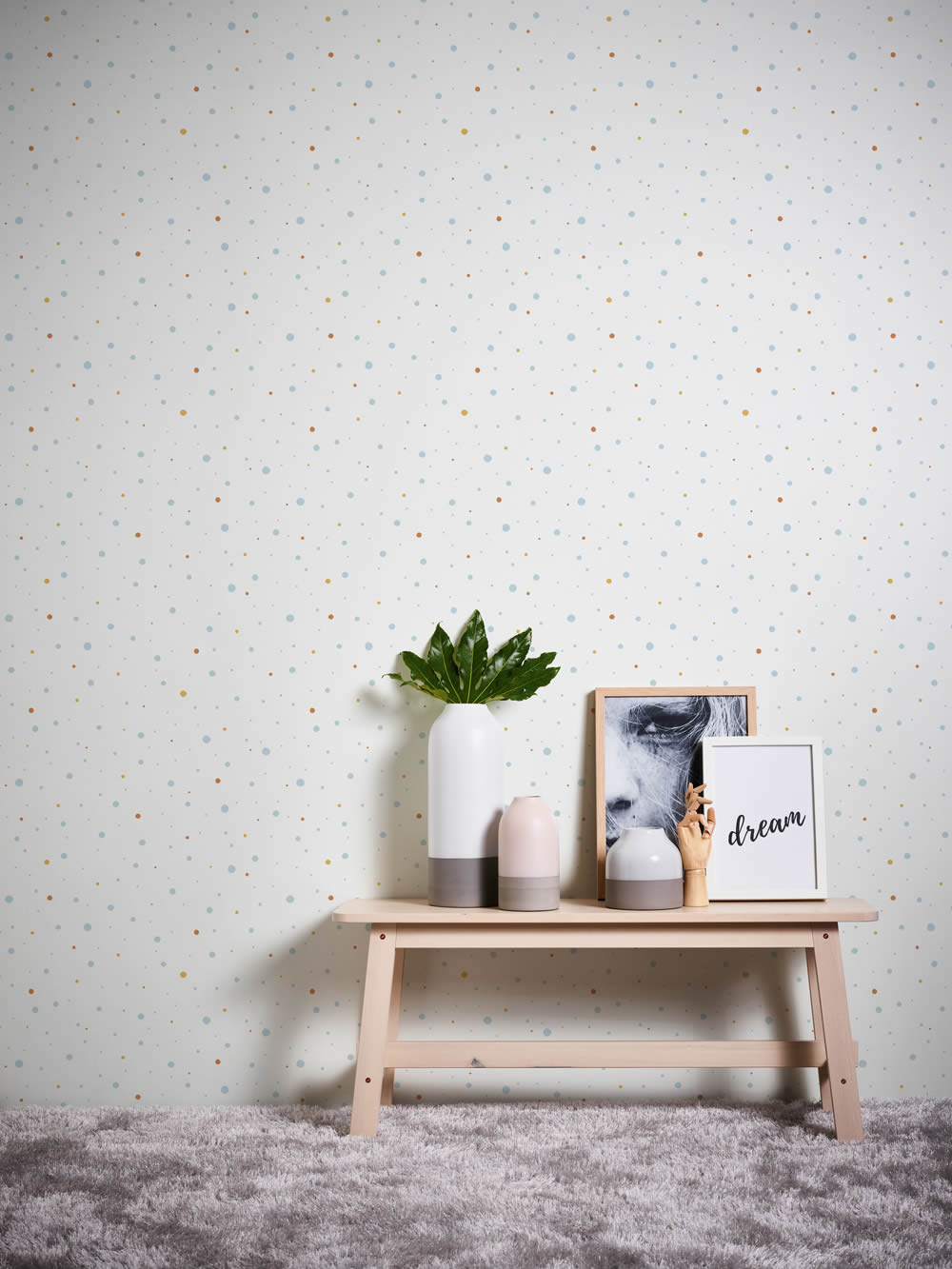 Farbkleckse ist das Thema der weißen, orange und blauen Vliestapete 381162 mit Konfetti für das Kinderzimmer. Ein Themenzimmer mit bunte Punkte-Motiven liegt voll im Trend und passt zu einer niedlichen Einrichtung im Kinderzimmer. Diese Vliestapete hat eine matt und glatte Oberfläche und ist im Format 0,53 x 10,05 m. Der Tapetenhersteller AS Creation bietet mit seiner Kollektion Little Love viele zur Farbe weiß, orange und blau und themenmäßig perfekt auf einander abgestimmte Ergänzungsprodukte. Farbige Konfetti in weiß, orange und blau als perfekter Spielebegleiter für Kids. Weiße, orange und blaue Vliestapeten bieten die Möglichkeit die Wände passend zu den Gardinen und Teppichen im Kinderzimmer zu gestalten. Leichte Verarbeitung ist ein großer Vorteil bei Vlies-Vliestapeten. Durch die Wandklebetechnik kann der Kleister direkt auf die Wand aufgebracht werden. Eine Vliestapete setzt einzelne Wände gezielt in Szene und lässt sich gut mit Farben oder Unitapeten kombinieren.