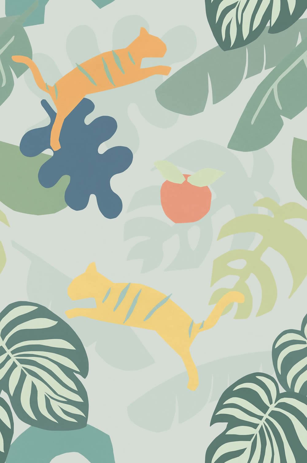 Wandbild, grafische Tiere, Muster, Kinderzimmer, Mintgrün, Pastel, gelb, grün, Smartpaper, Vlies