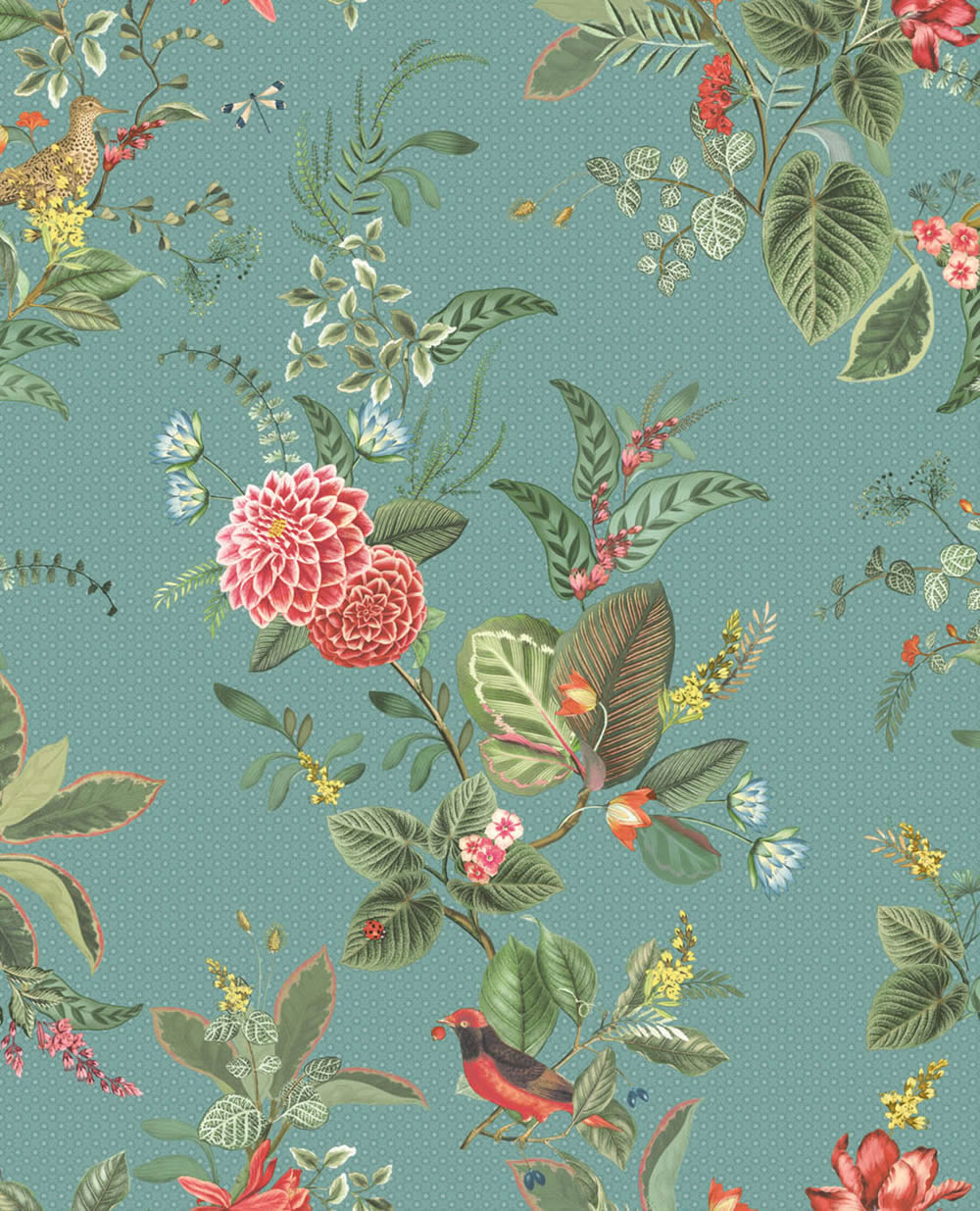 Kinderzimmer, Vliestapete, feine Struktur, matt, grau, grün, rot, gelb, Natur, Blumen, Vögel