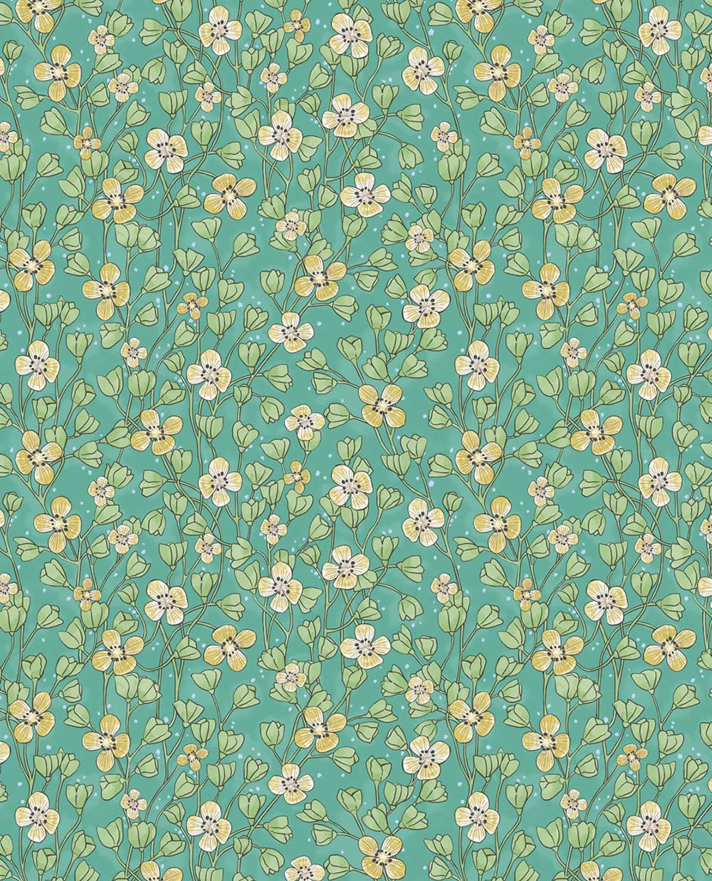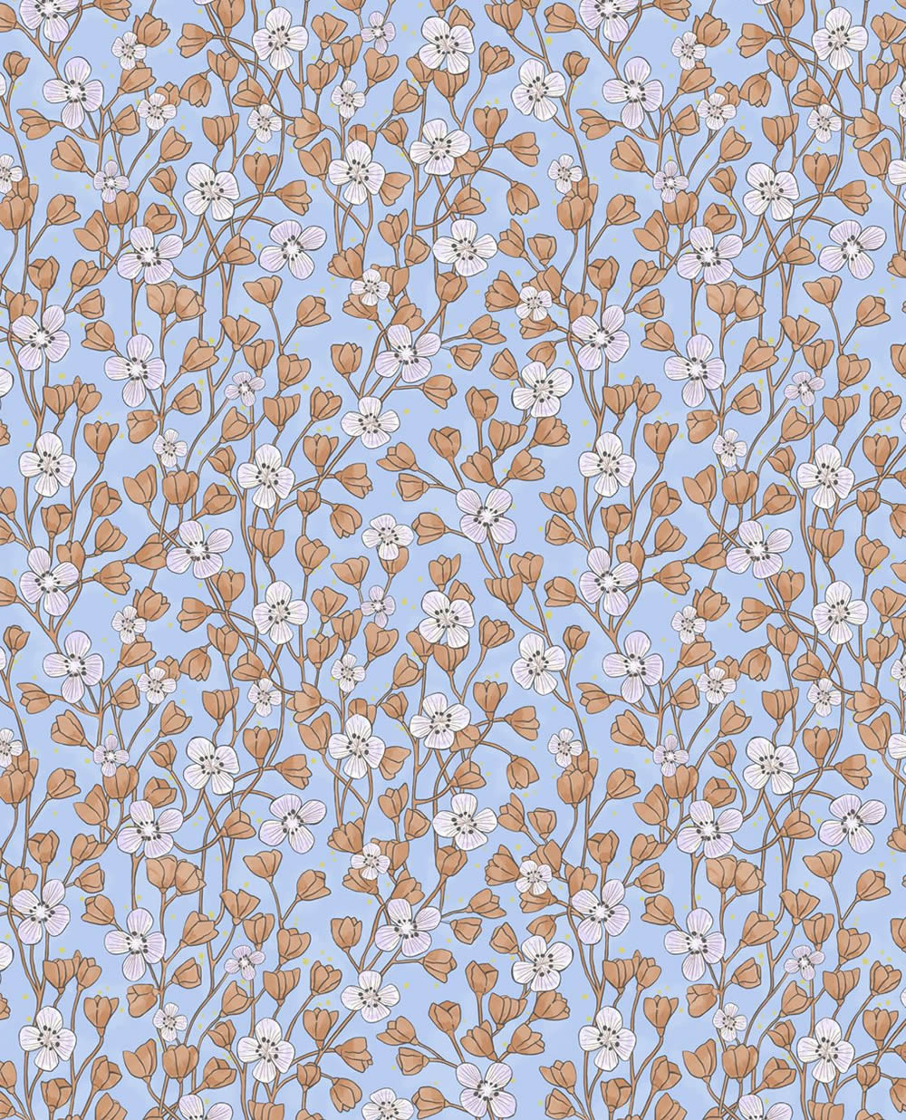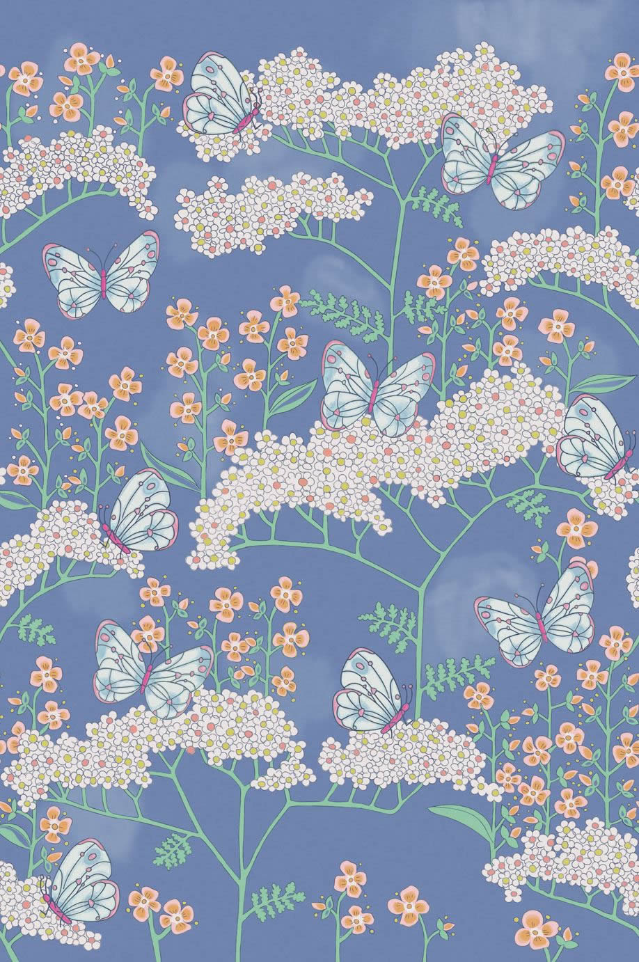 blau, orange, matt/glänzend, glatt, Vliestapete, Blumen, Kinderzimmer