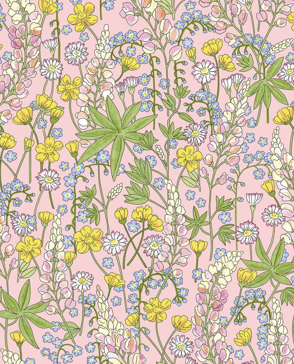 matt, glatt, Vliestapete, Blumenmotive, grün, rosa, weiß, gelb, dunkel-rot