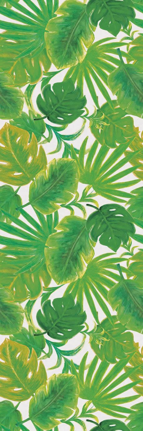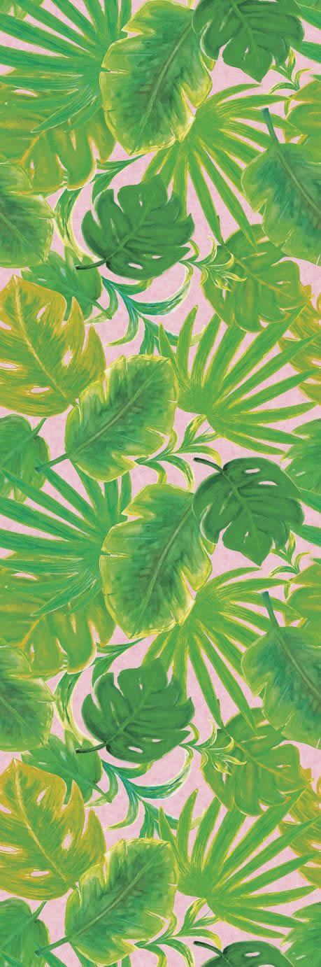 rosa, grün, Palmenblätter, Vliesträger, matt, glatt, 0,93 x 2,80 m, 2 Bahnen