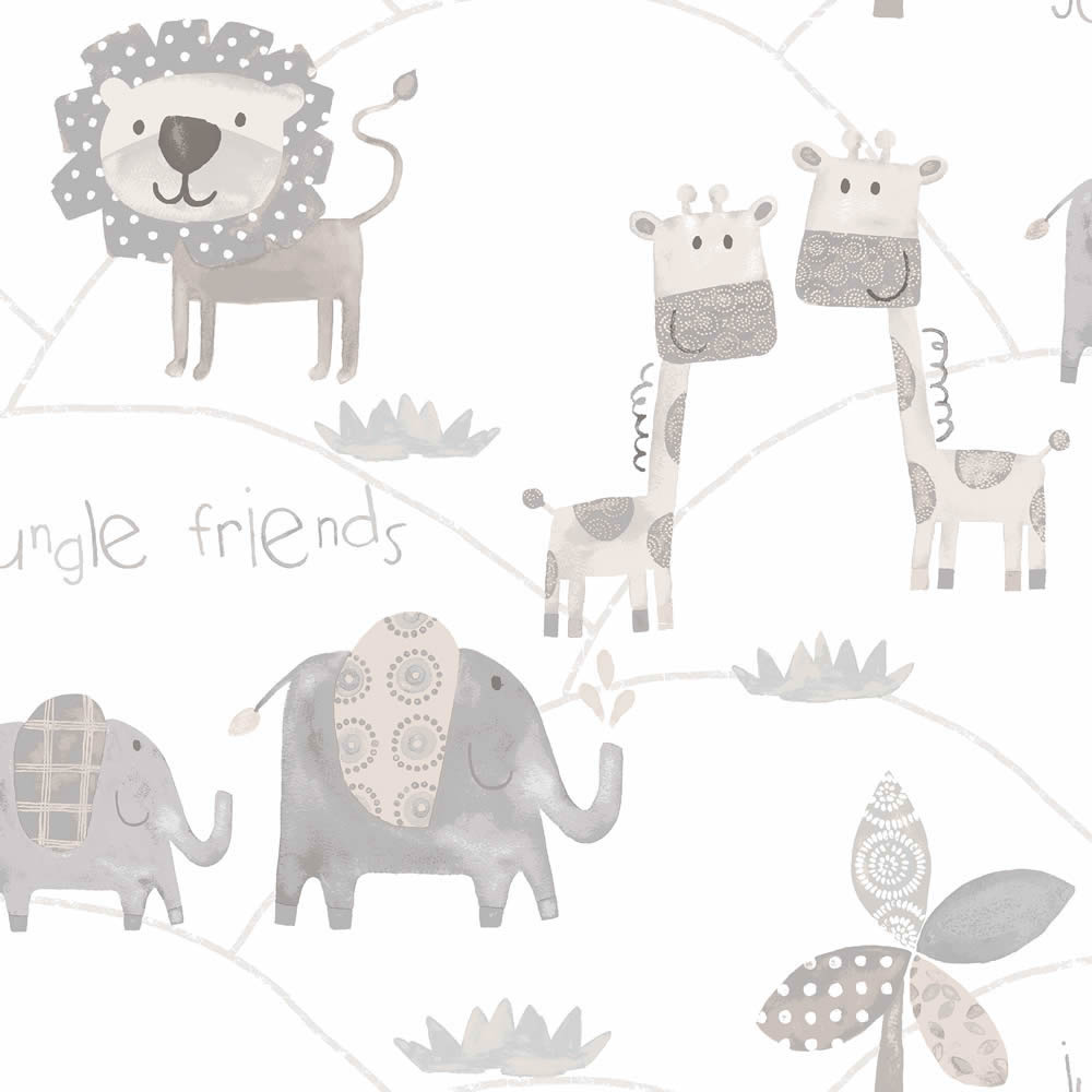 weiß, hell-grau, beige, Kinderzimmer, Vliestapete, matt, glatt, Tiere