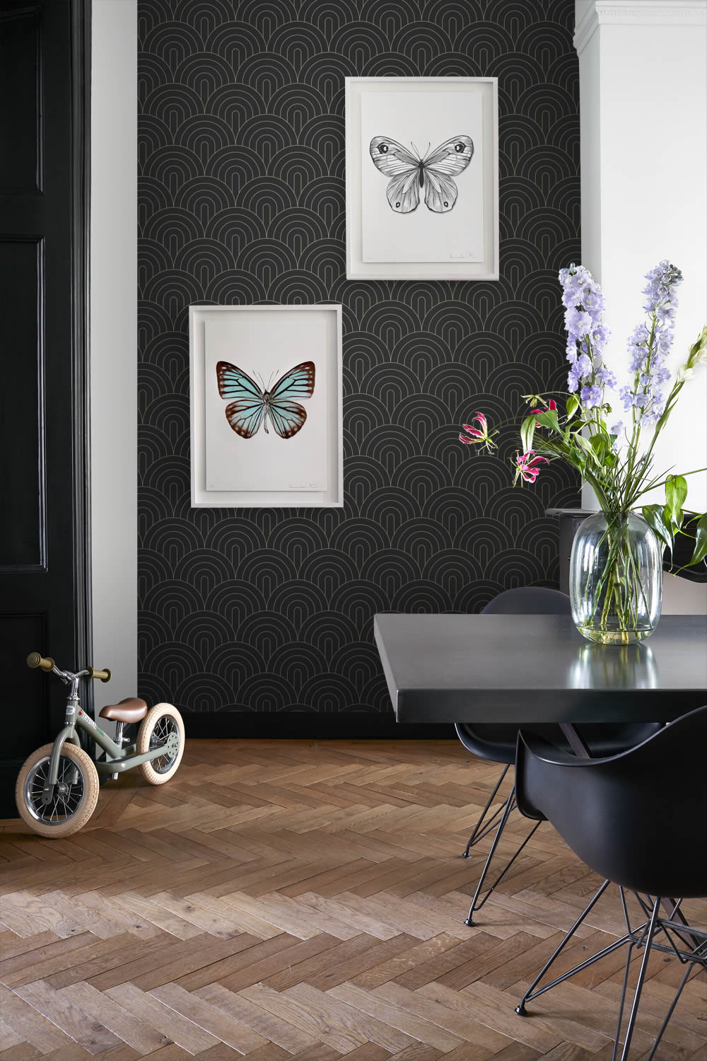Diese Vliestapete ist eine ausdrucksstarke Wahl für moderne Kinder- und Jugendzimmer und überzeugt mit einem klaren grafischen Muster in tiefem Schwarz, das sowohl Jungen als auch Mädchen zwischen Kindheit und Teenageralter anspricht. Das Design zeigt strukturierte Linien und geometrische Elemente, die sich rhythmisch über die glatte Tapetenoberfläche ziehen und dadurch eine stilisierte, technische oder urbane Wirkung erzeugen. Dabei bleibt das Muster trotz seiner Ausdruckskraft dezent genug, um sich harmonisch in unterschiedliche Einrichtungsstile einzufügen, und lässt sich sowohl mit farbigen als auch neutralen Möbeln oder Accessoires hervorragend kombinieren. Die matte Oberfläche verstärkt den hochwertigen Look und verhindert störende Lichtreflexe, was besonders in Räumen mit Bildschirmnutzung wie Schlaf- oder Arbeitszimmer von Vorteil ist. Die Farbgebung in tiefem Schwarz verleiht dem Raum Tiefe und eine coole, elegante Note, ohne ihn zu verdunkeln, vor allem wenn die Tapete nur an einer oder zwei Wänden eingesetzt wird. Die technischen Eigenschaften sind auf Alltagstauglichkeit ausgelegt. Die Tapete ist waschbeständig und hält somit auch kleinen Verschmutzungen stand, gleichzeitig bleibt das grafische Muster durch die gute Lichtbeständigkeit dauerhaft klar erkennbar und wirkt auch bei Sonneneinstrahlung nicht ausgeblichen. Die Wandklebetechnik ermöglicht eine einfache und saubere Anbringung, wobei der Kleister direkt auf die Wand aufgetragen wird. Die Tapete kann bei Bedarf trocken und ohne Rückstände wieder entfernt werden, was die Gestaltung besonders flexibel macht. Mit einer Breite von 53 cm und einer Rollenlänge von über 10 Metern eignet sie sich optimal für mittlere bis größere Wandflächen. Der gerade Ansatz von 26,5 cm erleichtert das präzise Anbringen des Musters, wodurch ein stimmiges Gesamtbild entsteht. Diese Tapete passt besonders gut in Jugendzimmer, kreative Arbeitsbereiche oder moderne Spielflächen und verleiht jedem Raum ein individuelles und gleichzeitig klares Ambiente, das sowohl stylisch als auch funktional ist.