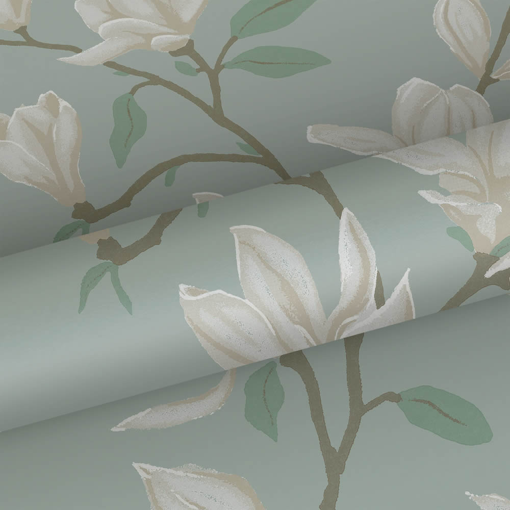 Produktinformationen "Musterstück Vliestapete Blumen Magnolien grün 139405"