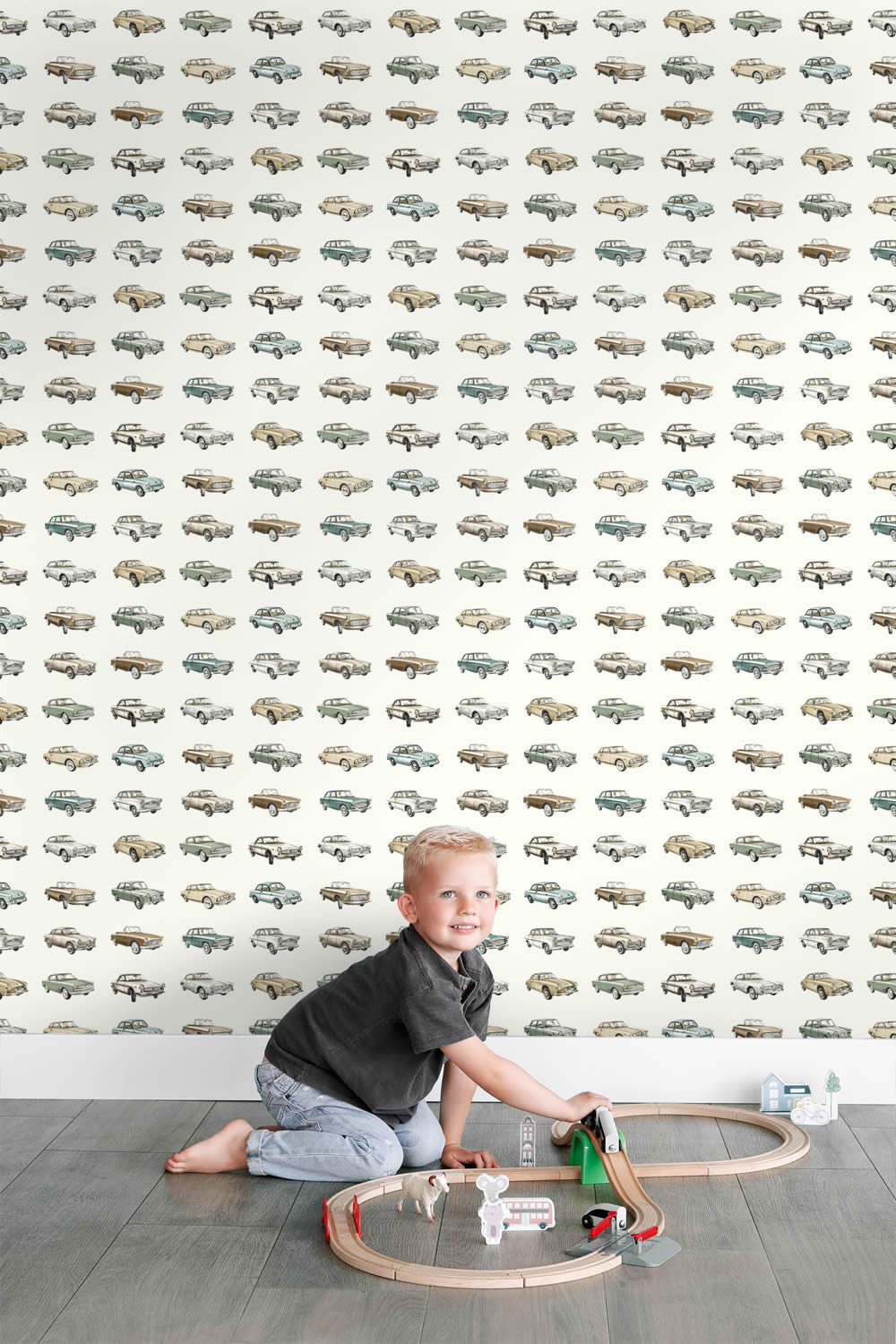 Mit dieser Vliestapete zieht die Welt der Oldtimer Fahrzeuge in die eigenen vier Wände ein und verwandelt das Zimmer in einen Ort voller Nostalgie und Abenteuer. Auf hellem Grund präsentieren sich detailreich illustrierte Autos in verschiedenen Retro Farben wie Beige, Creme, Naturtönen sowie Akzenten in Grün und Hellblau. Die Fahrzeuge wirken fast wie handgezeichnet und wecken bei kleinen Autofans Begeisterung für Technik und Bewegung. Gleichzeitig vermittelt das harmonische Farbspiel eine ruhige und warme Atmosphäre, die den Raum gemütlich wirken lässt. Besonders gut eignet sich dieses Motiv für Kinderzimmer von Jungen und Mädchen im Alter von zwei bis zwölf Jahren, aber auch Teenager finden Gefallen an dem coolen Oldtimer Look. Die Tapete hat eine glatte matte Oberfläche, die nicht nur angenehm wirkt, sondern auch strapazierfähig ist. Sie ist waschbeständig und leicht zu reinigen, was sie besonders praktisch für lebhafte Familien macht. Zudem ist sie gut lichtbeständig, sodass die Farben auch bei Sonneneinstrahlung lange erhalten bleiben. Die Maße der Rolle von 0,53 mal 10,05 Metern sind optimal, um ganze Wände oder Akzentflächen zu gestalten. Mit dem geraden Ansatz von 53 Zentimetern gelingt die Verarbeitung mühelos. Durch die moderne Wandklebetechnik trägt man den Kleister direkt auf die Wand auf, was Zeit spart und für ein sauberes Ergebnis sorgt. Sollte sich der Einrichtungsstil irgendwann ändern, lässt sich die Vliestapete trocken und vollständig von der Wand abziehen, ohne Rückstände zu hinterlassen. Damit bleibt sie flexibel und unkompliziert in jeder Raumgestaltung. Ob im Spielzimmer, im Kinderzimmer oder auch im Jugendzimmer - diese Oldtimer Tapete verleiht jedem Raum einen einzigartigen Charakter, der gleichzeitig verspielt und stilvoll wirkt.