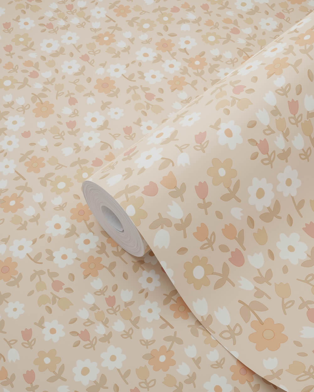 Diese Vliestapete begeistert mit einem zarten Blumenmuster in Apricot, Creme und Beige, das jedem Raum eine freundliche und warme Ausstrahlung verleiht. Kleine Blümchen in Orange und Weiß sorgen für spielerische Akzente und machen die Tapete zur idealen Wahl für Babyzimmer, Mädchenzimmer oder Spielbereiche. Die matte glatte Oberfläche wirkt hochwertig, während die Tapete waschbeständig, lichtbeständig und leicht anzubringen ist.