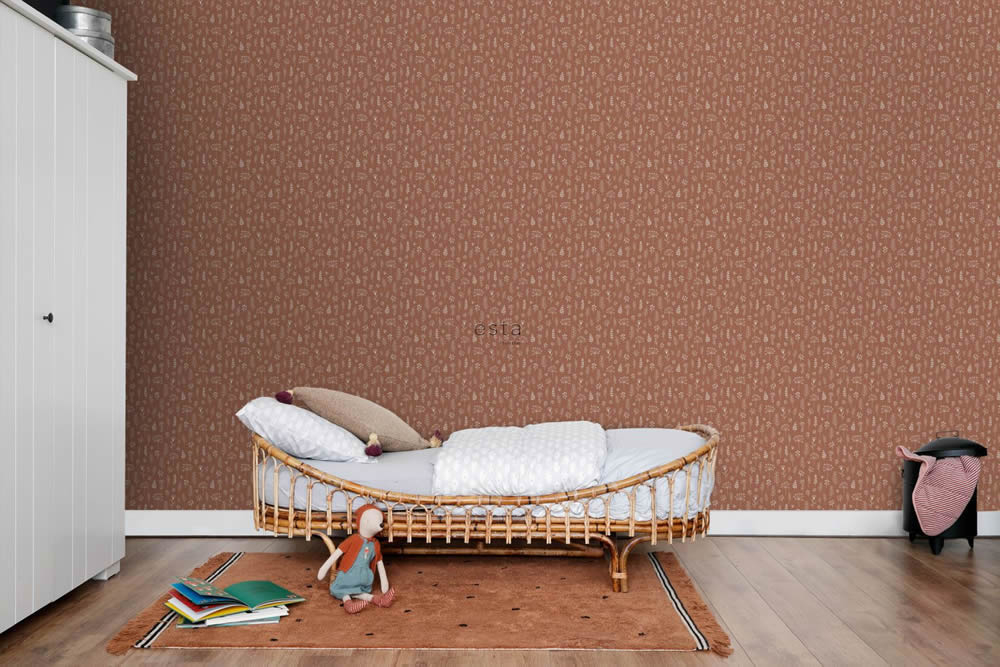Die Blumentapete von Esta Home verbindet Natürlichkeit mit zeitgemäßem Design und schafft eine wohnliche Umgebung, die sowohl für Kinderzimmer als auch für Jugendzimmer oder kreative Wohnbereiche geeignet ist. Der braune Hintergrund in erdigen Tönen bildet die Basis für zarte, cremefarbene Zeichnungen von Blüten, Blättern und filigranen Pflanzenmotiven, die dem Raum Struktur und Lebendigkeit verleihen. Durch den Kontrast zwischen dem warmen Braun und den hellen Details entsteht eine ruhige, harmonische Wirkung, die Geborgenheit vermittelt und zugleich stilvoll wirkt. Besonders Teenager und ältere Kinder schätzen die moderne Farbgestaltung, die nicht zu verspielt ist und lange aktuell bleibt. Die matte glatte Oberfläche hebt die feinen Linien des Musters elegant hervor und sorgt für eine hochwertige Optik. Mit einer Rollenbreite von 0,53 Metern und einer Länge von 10,05 Metern lässt sich die Tapete flexibel einsetzen, ob für einzelne Akzentwände oder großflächige Raumgestaltungen. Der gerade Ansatz von 26,5 Zentimetern macht die Verarbeitung besonders einfach und sorgt für ein gleichmäßiges Musterbild. Dank der Wandklebetechnik gelingt das Anbringen unkompliziert, da der Kleister direkt auf die Wand aufgetragen wird. Auch im Alltag überzeugt die Tapete durch ihre Funktionalität. Sie ist waschbeständig, sodass sich Verschmutzungen leicht entfernen lassen, und gut lichtbeständig, wodurch die Farben lange frisch bleiben. Sollte eine Umgestaltung anstehen, kann die Vliestapete trocken und rückstandslos entfernt werden. Diese Kombination aus dekorativem Design und praktischen Eigenschaften macht sie zur idealen Wahl für Familien, die Wert auf langlebige und zugleich stilvolle Wandgestaltung legen. Mit ihrem floralen Muster und der warmen Farbgebung bringt sie Natürlichkeit, Behaglichkeit und ein modernes Flair in den Raum.