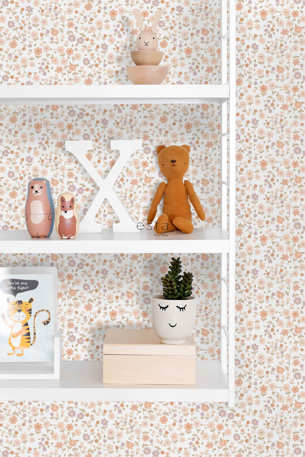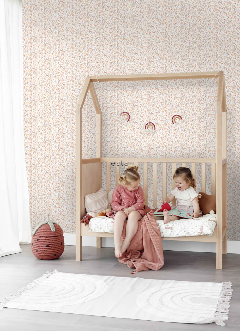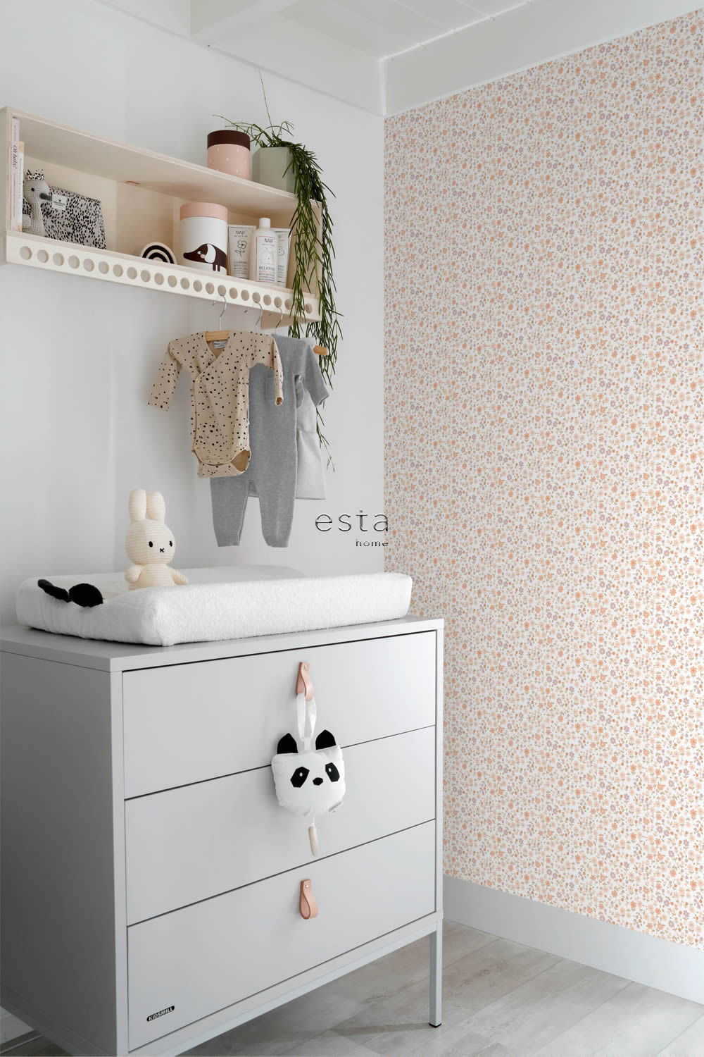 Die Blumentapete floral Blümchen von Esta Home bringt natürliche Leichtigkeit und zarte Farben an die Wand. Auf einem hellen cremefarbenen Hintergrund entfaltet sich ein feines Muster aus kleinen Blüten in Orange, Rosa und sanften Pastellnuancen, ergänzt durch dezente Blätter in Naturtönen. Die harmonische Gestaltung erinnert an einen blühenden Frühlingsgarten und schafft ein Ambiente voller Frische und Wärme. Besonders für Baby- und Kinderzimmer eignet sich dieses Design hervorragend, da es eine beruhigende, aber auch spielerische Stimmung erzeugt, die Mädchen im Kleinkind- und Schulalter begeistert. Durch die sanfte Farbgebung wirkt der Raum heller und optisch großzügiger, was die Tapete auch für kleinere Räume zur idealen Wahl macht. Die matte glatte Oberfläche unterstreicht den hochwertigen Charakter und sorgt dafür, dass das Blumenmotiv elegant zur Geltung kommt. Mit den Maßen von 0,53 mal 10,05 Metern pro Rolle bietet die Tapete viele Möglichkeiten für komplette Wandgestaltungen oder dezente Akzentbereiche. Der versetzte Ansatz von 8,8 Zentimetern gewährleistet, dass das Muster gleichmäßig wirkt. Neben der optischen Wirkung überzeugt die Tapete auch praktisch. Sie ist waschbeständig, wodurch kleinere Verschmutzungen problemlos entfernt werden können. Dank ihrer guten Lichtbeständigkeit bleiben die Farben lange frisch und ausdrucksstark. Die Verarbeitung gelingt mühelos mit Wandklebetechnik, da der Kleister direkt auf die Wand aufgetragen wird. Bei einer späteren Umgestaltung lässt sich die Tapete trocken und restlos von der Wand abziehen, was sie zu einer unkomplizierten und flexiblen Lösung macht. Mit ihrem floralen Design verbindet sie Natürlichkeit, Eleganz und kindgerechte Fröhlichkeit und sorgt so für eine Wohlfühlatmosphäre, die Räume lebendig und einladend macht.
