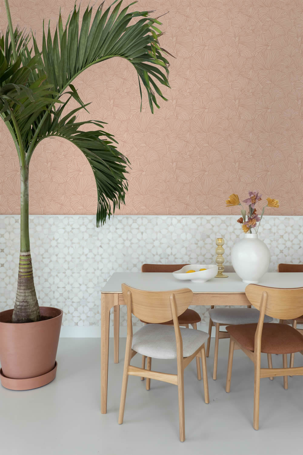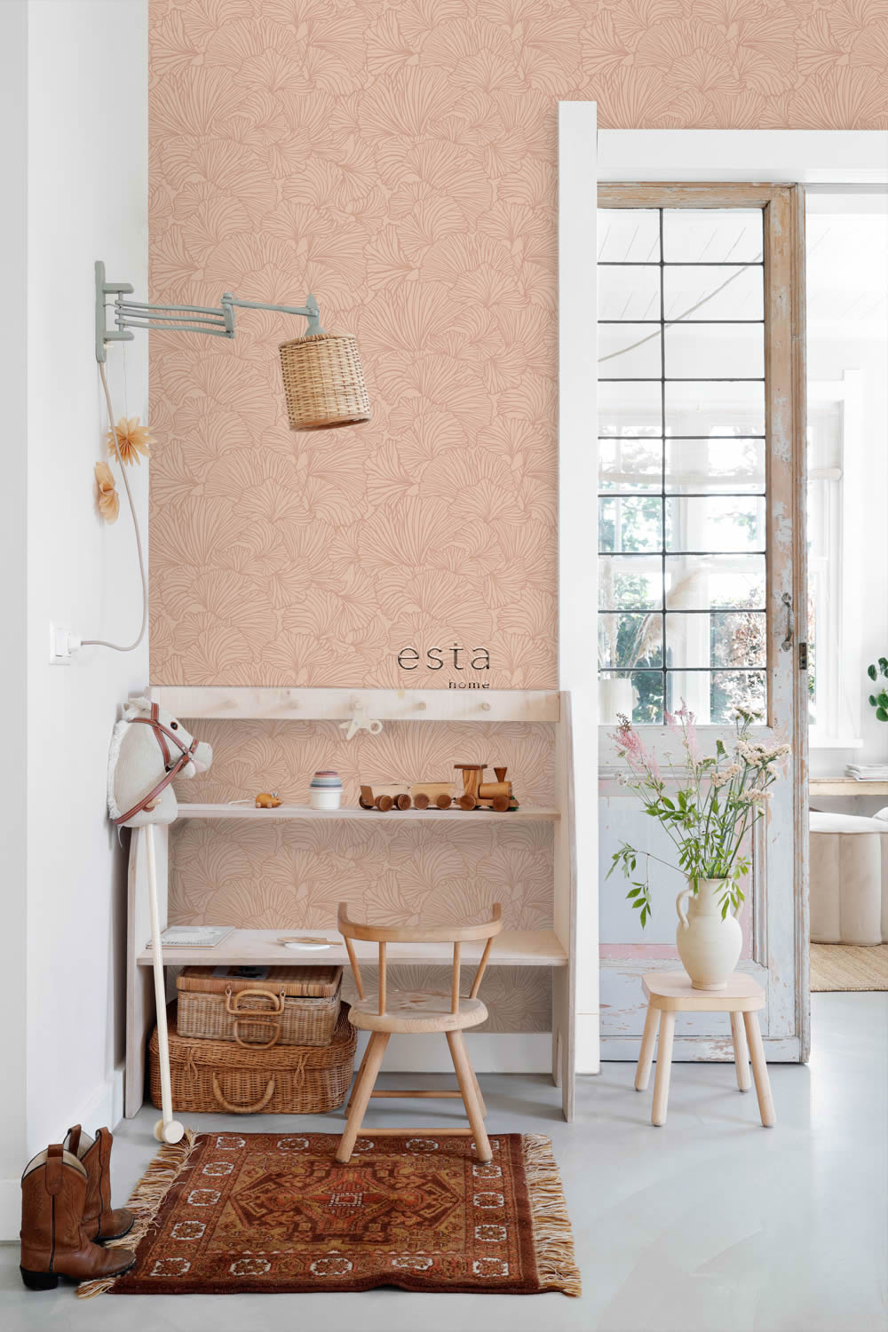 Tapete Blumen Blätter Line Art Vlies rosa terrakotta 139490