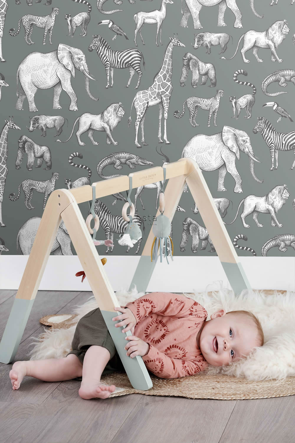 Mit dieser Tapete wird das Kinderzimmer zu einer faszinierenden Safariwelt. Afrikanische Tiere wie Elefanten, Löwen, Zebras, Giraffen und viele weitere Arten sind in feinen Zeichnungen auf petrolfarbenem Hintergrund dargestellt. Diese Gestaltung verbindet Abenteuer und Wissen, denn Kinder können die Tiere nicht nur bestaunen, sondern auch spielerisch mehr über die afrikanische Tierwelt lernen. Der tiefe Grünton wirkt modern und beruhigend zugleich, wodurch ein Raum entsteht, der sowohl lebendig als auch gemütlich wirkt. Besonders in Kombination mit Möbeln aus Holz, natürlichen Textilien oder bunten Akzenten entfaltet die Tapete ihre volle Wirkung und passt in Jungen- wie auch Mädchenzimmer. Durch die matte glatte Oberfläche kommt das filigrane Muster elegant zur Geltung. Die Maße von 0,53 mal 10,05 Meter bieten vielseitige Einsatzmöglichkeiten, ob für eine ganze Wand oder als Akzentfläche. Praktisch überzeugt die Tapete durch ihre pflegeleichten Eigenschaften, sie ist waschbeständig und damit unempfindlich im Alltag, gut lichtbeständig, sodass die Farben ihre Intensität behalten, und lässt sich bei Bedarf trocken sowie restlos abziehen. Mit der Wandklebetechnik gelingt die Anbringung unkompliziert und sauber. Diese Tapete mit afrikanischen Tieren vereint ästhetisches Design mit praktischer Alltagstauglichkeit und macht das Kinderzimmer zu einem Ort voller Fantasie und Entdeckungen.