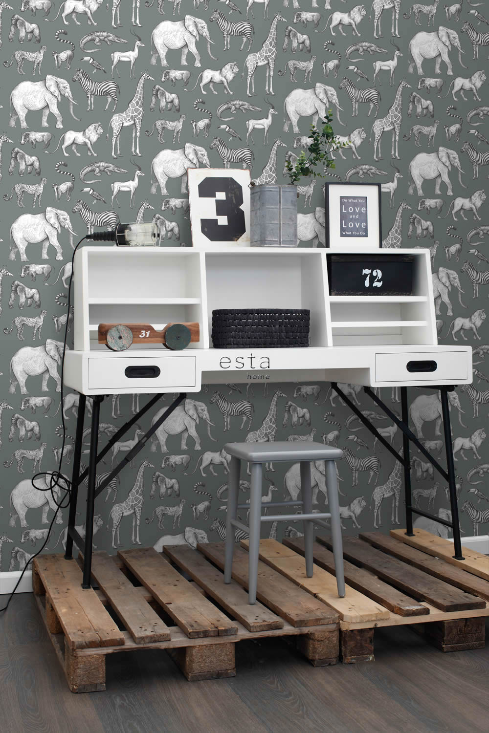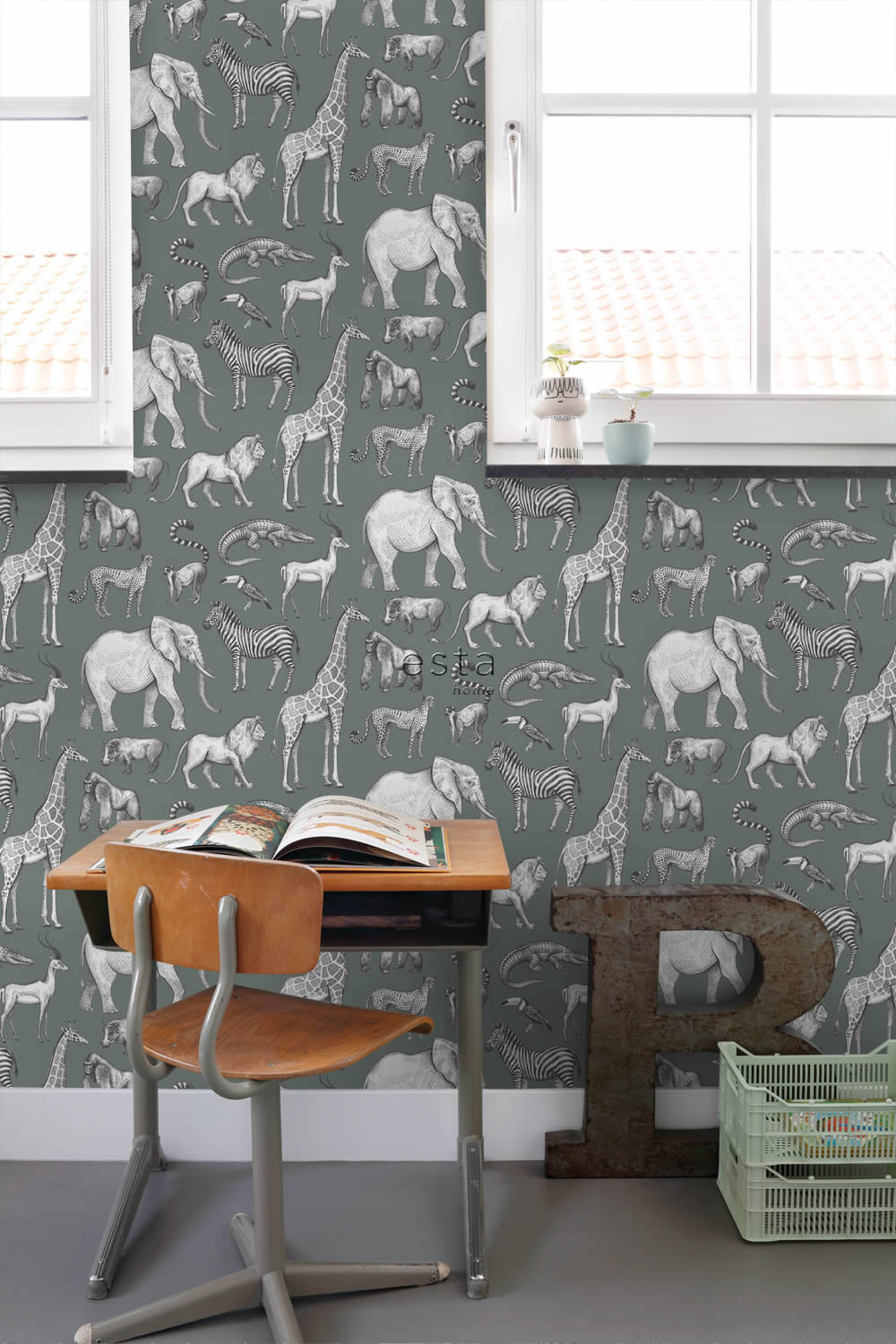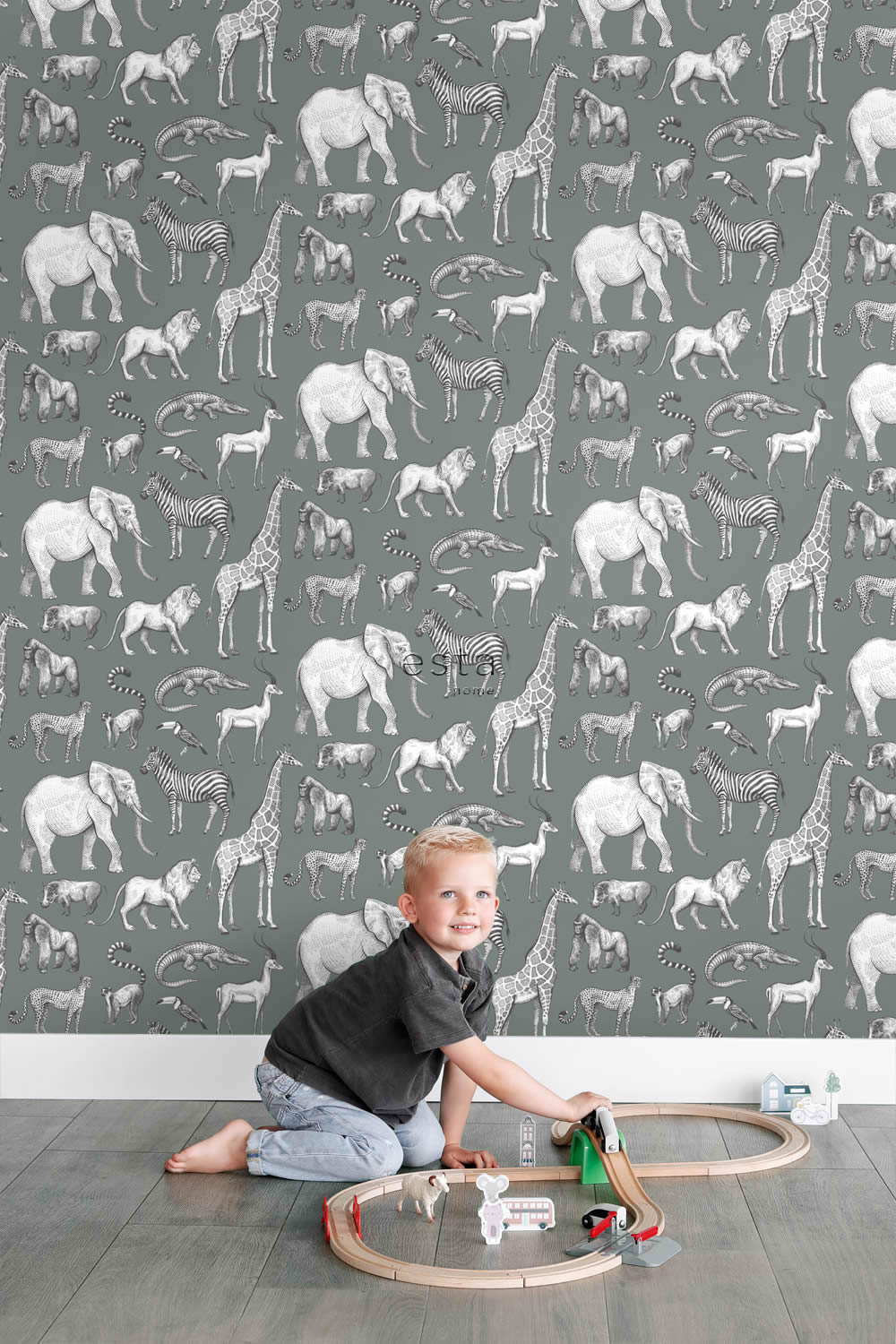 Produktinformationen "Tapete afrikanische Tiere Zeichnung Vlies petrol 139513"