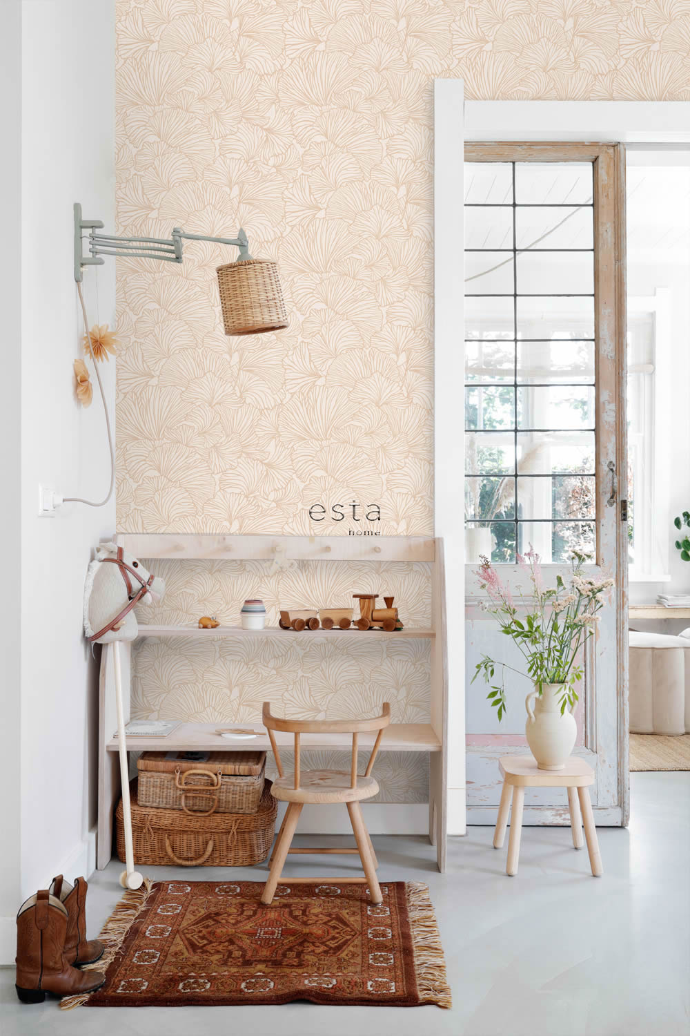 Mit ihrem zarten Ginkgo Muster in Beige und Terrakotta bringt diese Vliestapete eine ruhige, natürliche Atmosphäre ins Kinderzimmer. Die organische Linienführung der Blätter sorgt für Leichtigkeit und Stil. Dank matter, glatter Oberfläche wirkt das Design dezent und hochwertig. Die Tapete ist waschbeständig, lichtbeständig, trocken restlos abziehbar und lässt sich einfach mit Wandklebetechnik anbringen.