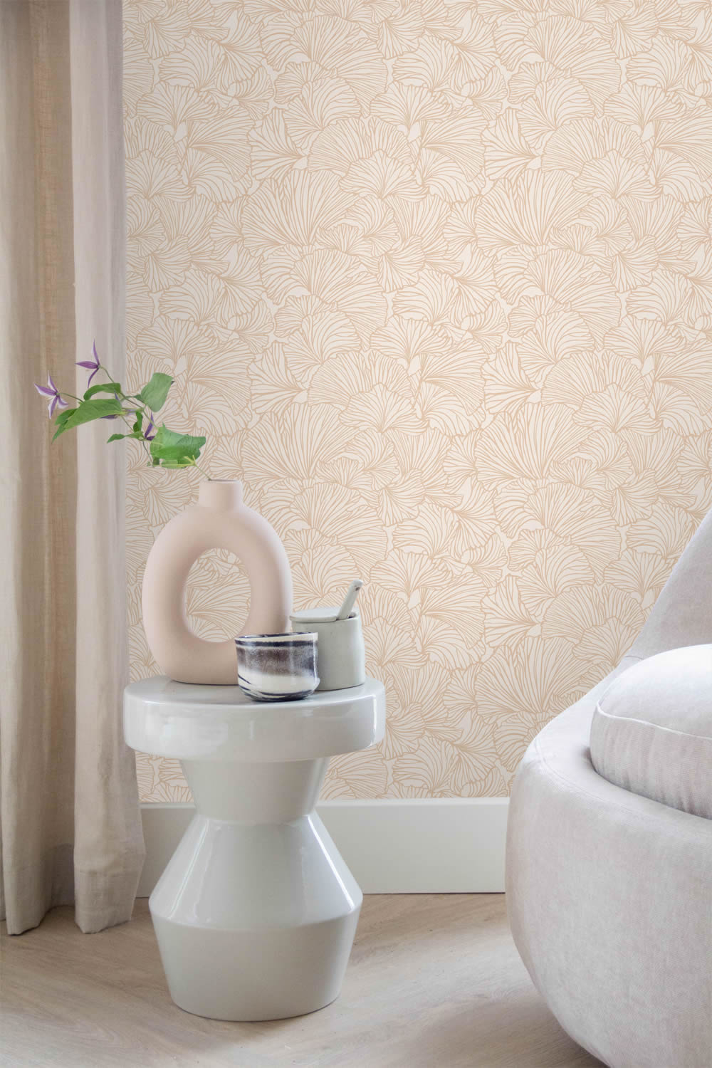 Vliestapete Ginkgo Blätter Japandi Naturmotiv beige 139488