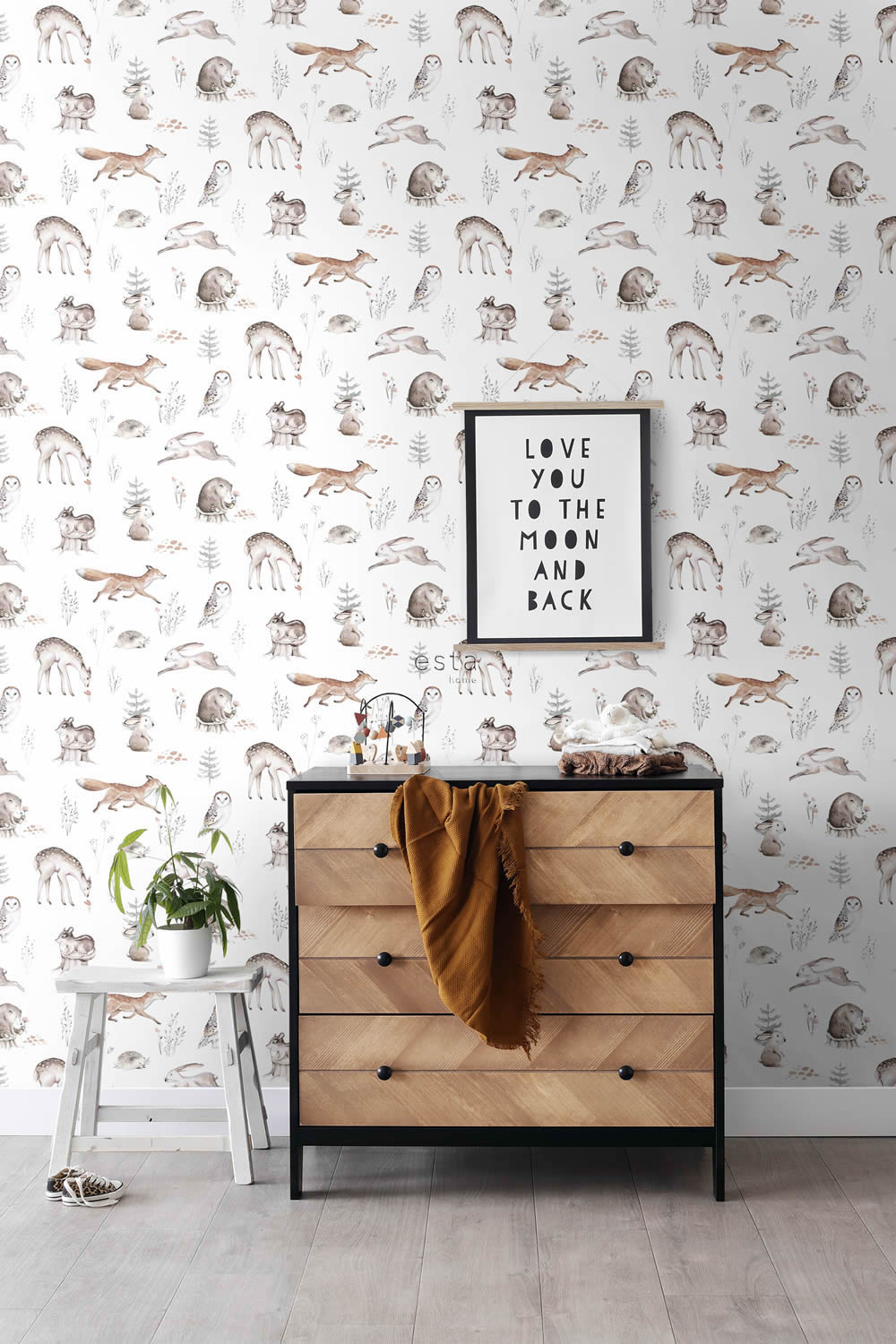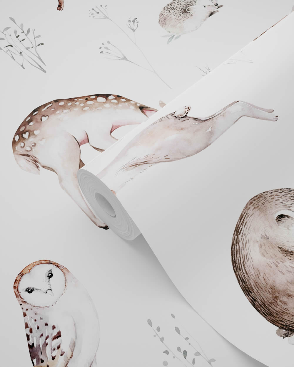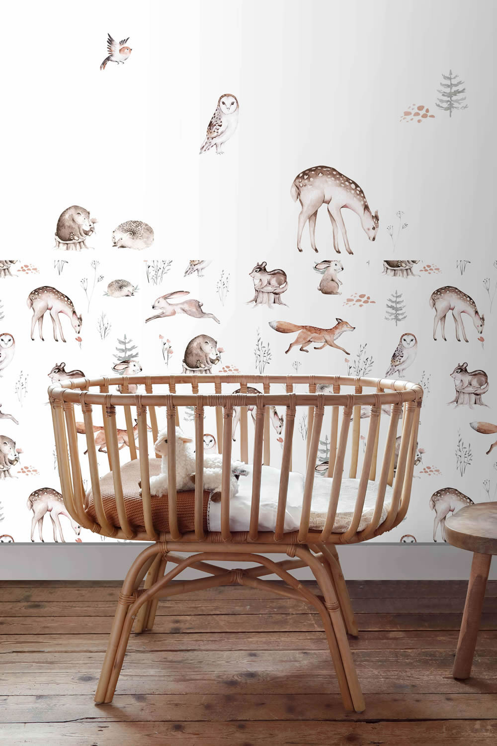 Waldtiere Tapete Aquarell Fuchs Reh Hase Natur pastell 139399