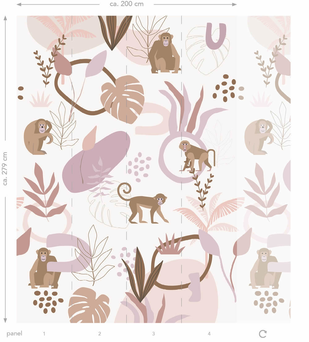 Produktinformationen "Wandbild 200 x 279 cm Boho Affen 4 Bahnen pastell rosa 159246"