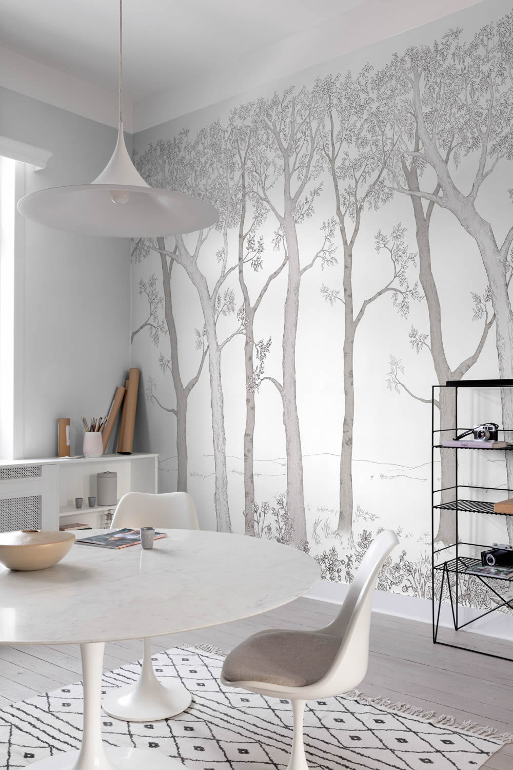 Fototapete 159 x 280 cm Wald Bäume Japandi weiß ML1701