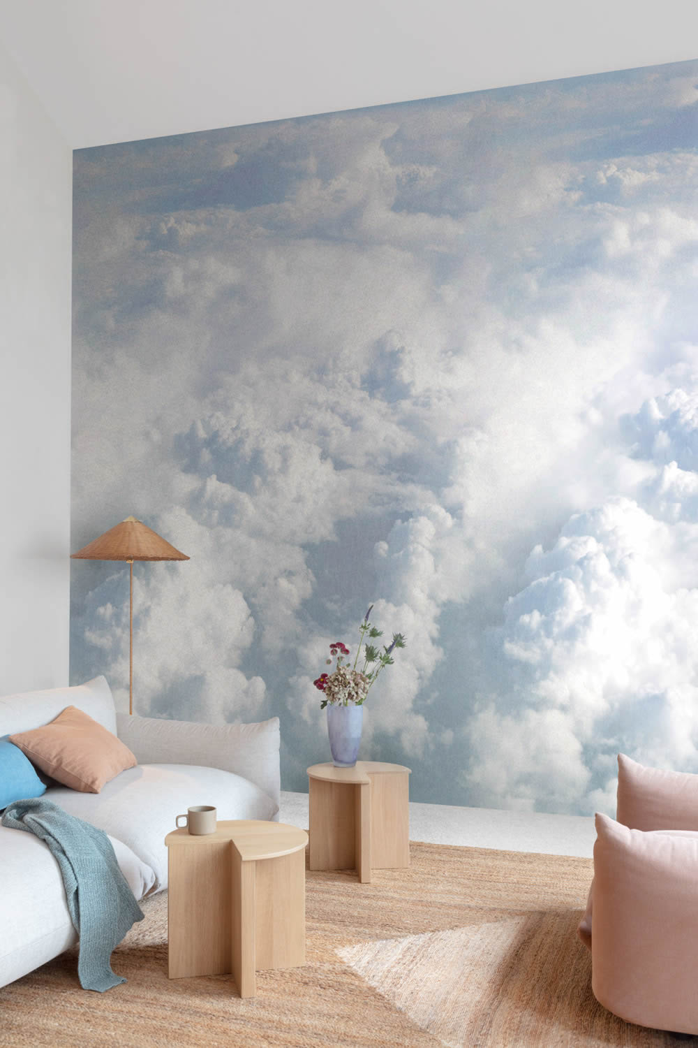 Diese Fototapete im Format 159 x 280 cm bringt das Gefühl von grenzenloser Weite und Leichtigkeit an jede Wand. Das Motiv zeigt eine realistische Wolkenlandschaft aus der Vogelperspektive mit dichtem, weißen Wolkenmeer und zarten Lichtreflexen. In verschiedenen Höhen und Strukturen türmen sich die Wolken auf, während im Hintergrund der Himmel in hellem Blau schimmert. Das Farbspiel wirkt ruhig, hell und freundlich und lässt jeden Raum größer und offener erscheinen. Besonders in Schlafräumen, Kinder- oder Jugendzimmern sowie in Ruhezonen entfaltet dieses Motiv seine ganze Wirkung. Die weiche Anmutung und das helle Farbspektrum schaffen ein Gefühl von Stille und Gelassenheit. Die Tapete besitzt eine glatte, matte Oberfläche, wodurch keine Lichtreflexe entstehen und das Motiv in seiner Tiefe und Weichheit voll zur Geltung kommt. Die hochwertigen Druckdetails machen auch feine Strukturen in den Wolken sichtbar, was das Bild besonders lebendig und realistisch wirken lässt. Die Fototapete lässt sich mithilfe der Wandklebetechnik leicht anbringen, indem der Kleister direkt auf die Wand aufgetragen wird. Sie ist hoch waschbeständig, gut lichtbeständig und kann bei Bedarf trocken und ohne Rückstände wieder entfernt werden. Dieses Wandbild ist ideal für alle, die sich eine ruhige, helle Raumwirkung mit einer Prise Himmelsromantik wünschen.