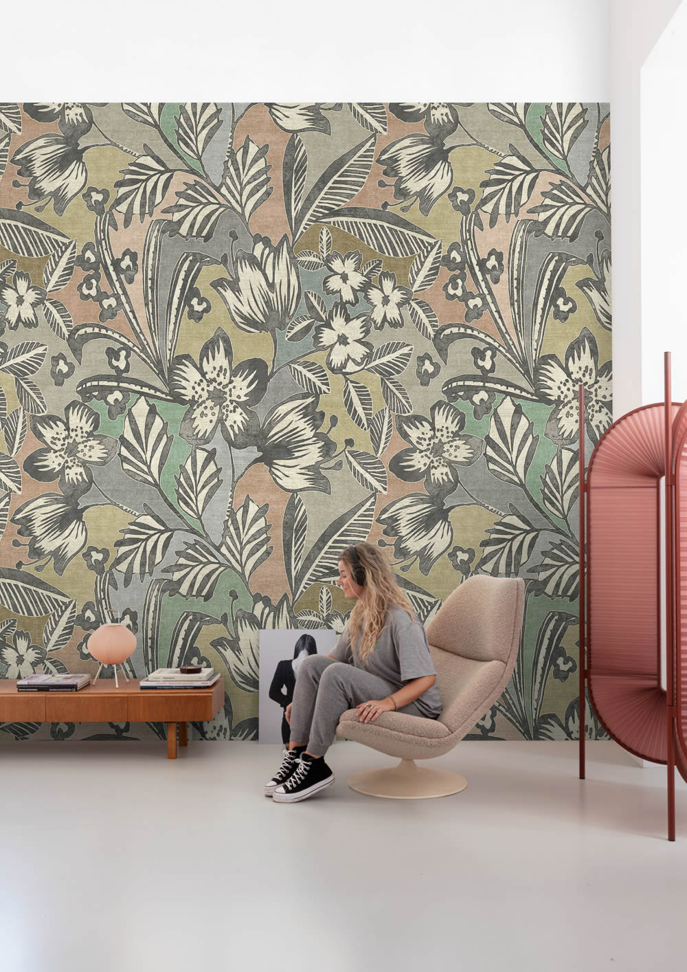 Produktinformationen "Wandbild 159 x 280 cm gezeichnete Blumen Blätter pastell ML4501"