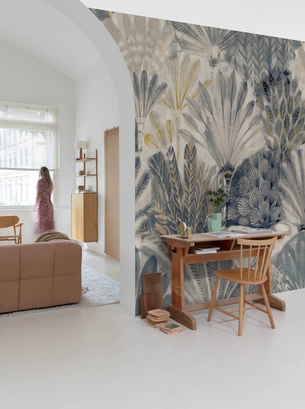 Dieses Wandbild bringt ein stilvolles Stück Natur in den Raum und überzeugt mit einer faszinierenden Darstellung tropischer Pflanzen und Farne in grafischer Anordnung. Verschiedene Blattarten fächern sich in Schichten übereinander und erzeugen so eine dichte, beinahe dreidimensionale Kulisse. Farblich bewegt sich das Motiv in einer Palette aus gedecktem Braun, warmem Grau, sanften Beige- und Blaugrautönen, was für eine ruhige und zugleich ausdrucksstarke Gesamtwirkung sorgt. Der Wechsel zwischen feiner Linienzeichnung und weich verlaufenden Farbflächen gibt dem Design Tiefe und eine besondere Textur. Die matte, glatte Oberfläche unterstreicht diesen Eindruck und bringt die Details der botanischen Muster hervorragend zur Geltung. Dieses exotisch angehauchte Wandbild eignet sich besonders gut für Jugendzimmer, Leseecken oder kreative Räume, in denen ein beruhigendes und gleichzeitig inspirierendes Umfeld entstehen soll. Trotz des dekorativen Charakters wirkt die Tapete nicht aufdringlich, sondern lässt sich harmonisch mit natürlichen Materialien und dezenten Farben kombinieren. Auch in funktionaler Hinsicht überzeugt die Fototapete. Sie ist hoch waschbeständig und damit auch für stärker beanspruchte Bereiche geeignet. Die Wandklebetechnik sorgt für eine unkomplizierte Anbringung, da der Kleister direkt auf die Wand aufgetragen wird. Wenn ein Tapetenwechsel gewünscht ist, lässt sie sich trocken und restlos abziehen. Durch ihre gute Lichtbeständigkeit bleiben die Farben und Strukturen auch bei Sonneneinstrahlung lange erhalten. Dieses botanische Wandbild vereint künstlerische Gestaltung mit natürlichen Elementen und schafft ein modernes Wohngefühl mit exotischer Note.
