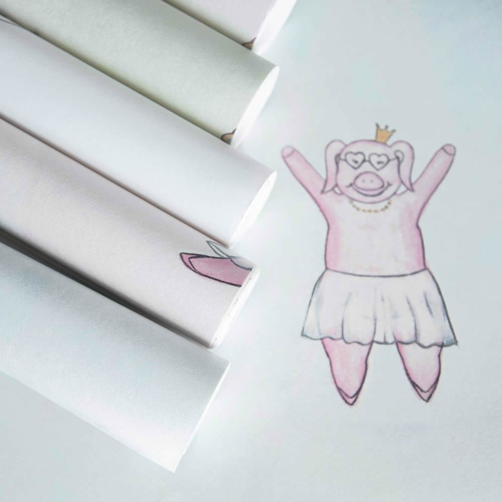 Diese bezaubernde Vliestapete von Hohenberger bringt mit ihren fröhlichen, tanzenden Schweinchen in süßen Ballerina Kleidchen eine märchenhafte und verspielte Atmosphäre in den Raum. Die niedlichen Prinzessinnen Schweinchen scheinen mit Leichtigkeit über den zart blauen Hintergrund zu tanzen, während kleine funkelnde Details für einen besonderen Schimmer sorgen. Dieses liebevolle Design ist ideal für Kinderzimmer oder kreative Spielbereiche, die eine verspielte und traumhafte Note erhalten sollen. Die sanfte Farbgebung in Blau und Rosa lässt sich wunderbar mit hellen Holztönen oder pastelligen Nuancen kombinieren und schafft eine harmonische Raumgestaltung. Die hochwertige Vliesqualität überzeugt mit zahlreichen praktischen Vorteilen. Die Tapete ist waschbeständig, gut lichtbeständig und kann trocken restlos abgezogen werden, was eine einfache Entfernung ermöglicht. Dank der Wandklebetechnik gestaltet sich das Tapezieren besonders unkompliziert, da der Kleister direkt auf die Wand aufgetragen wird. Die glänzende Oberfläche mit sanftem Schimmereffekt hebt die fröhlichen Schweinchen noch schöner hervor und sorgt für eine lebendige Optik. Mit einem versetzten Ansatz von 32 cm entsteht ein besonders harmonisches Gesamtbild. Ob als liebevolle Akzentwand oder für eine komplette Raumgestaltung - diese Tapete bringt Freude und eine märchenhafte Leichtigkeit in jedes Kinderzimmer. Eine perfekte Wahl für alle, die eine hochwertige und fantasievolle Wandgestaltung suchen.