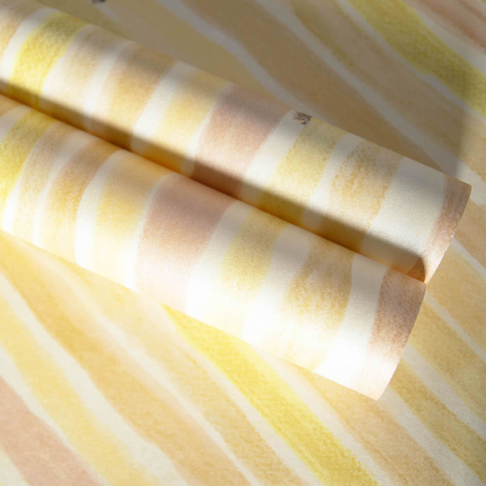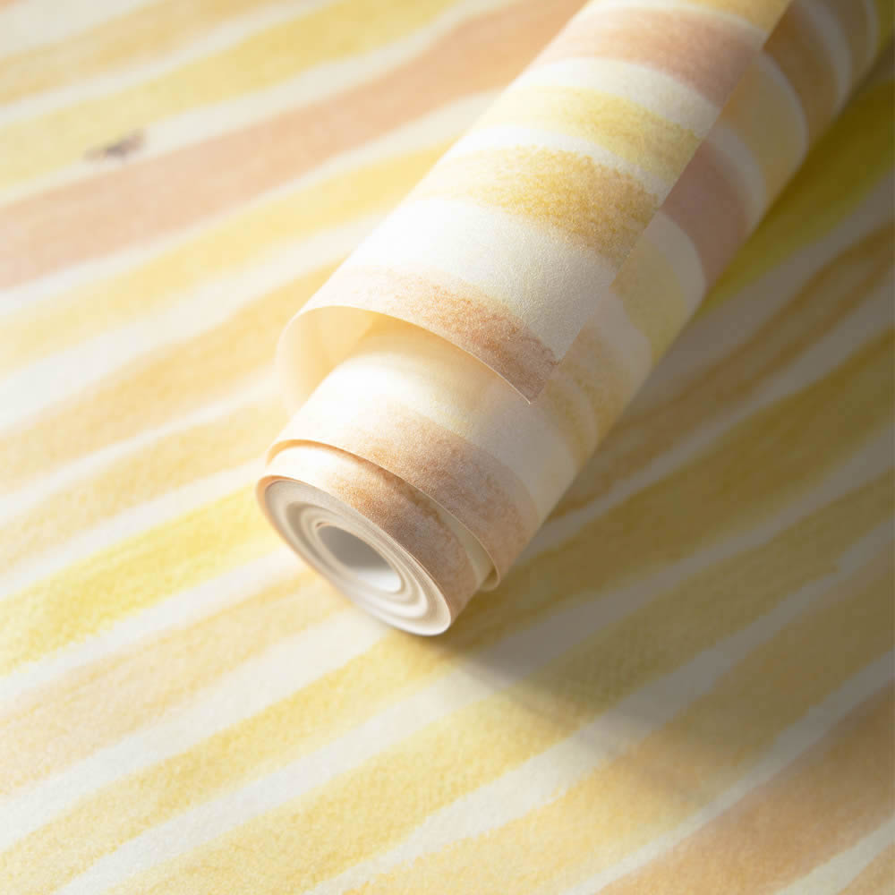 Diese liebevoll gestaltete Vliestapete von Hohenberger vereint sanfte Streifen in Lemon Gelb und Hell Orange mit kleinen, detailreichen Wichtel Motiven zu einem einzigartigen Design. Die geschwungenen Aquarell Linien erzeugen eine sanfte Bewegung, die an Sonnenstrahlen oder eine leichte Sommerbrise erinnert, während die verspielten Wichtel zwischen den Streifen für eine märchenhafte Atmosphäre sorgen. Die harmonische Farbgebung bringt Wärme in den Raum und eignet sich perfekt für Kinderzimmer, Spielbereiche oder fantasievolle Wohnräume. Die hellen Gelb- und Orangetöne lassen sich wunderbar mit natürlichen Materialien, weißen Möbeln oder weiteren Pastellfarben kombinieren. Die hochwertige Vliesqualität überzeugt mit zahlreichen praktischen Vorteilen. Die Tapete ist waschbeständig, gut lichtbeständig und kann trocken restlos abgezogen werden, was eine einfache Entfernung ermöglicht. Dank der Wandklebetechnik gestaltet sich das Tapezieren besonders unkompliziert, da der Kleister direkt auf die Wand aufgetragen wird. Die glänzende Oberfläche hebt die Aquarell Struktur der Streifen besonders hervor und verleiht dem Design eine frische Leichtigkeit. Ob als fröhliche Akzentwand oder zur kompletten Raumgestaltung - diese Tapete bringt Licht, Farbe und einen Hauch von Magie in jedes Zuhause. Eine perfekte Wahl für alle, die eine hochwertige und fantasievolle Wandgestaltung suchen.