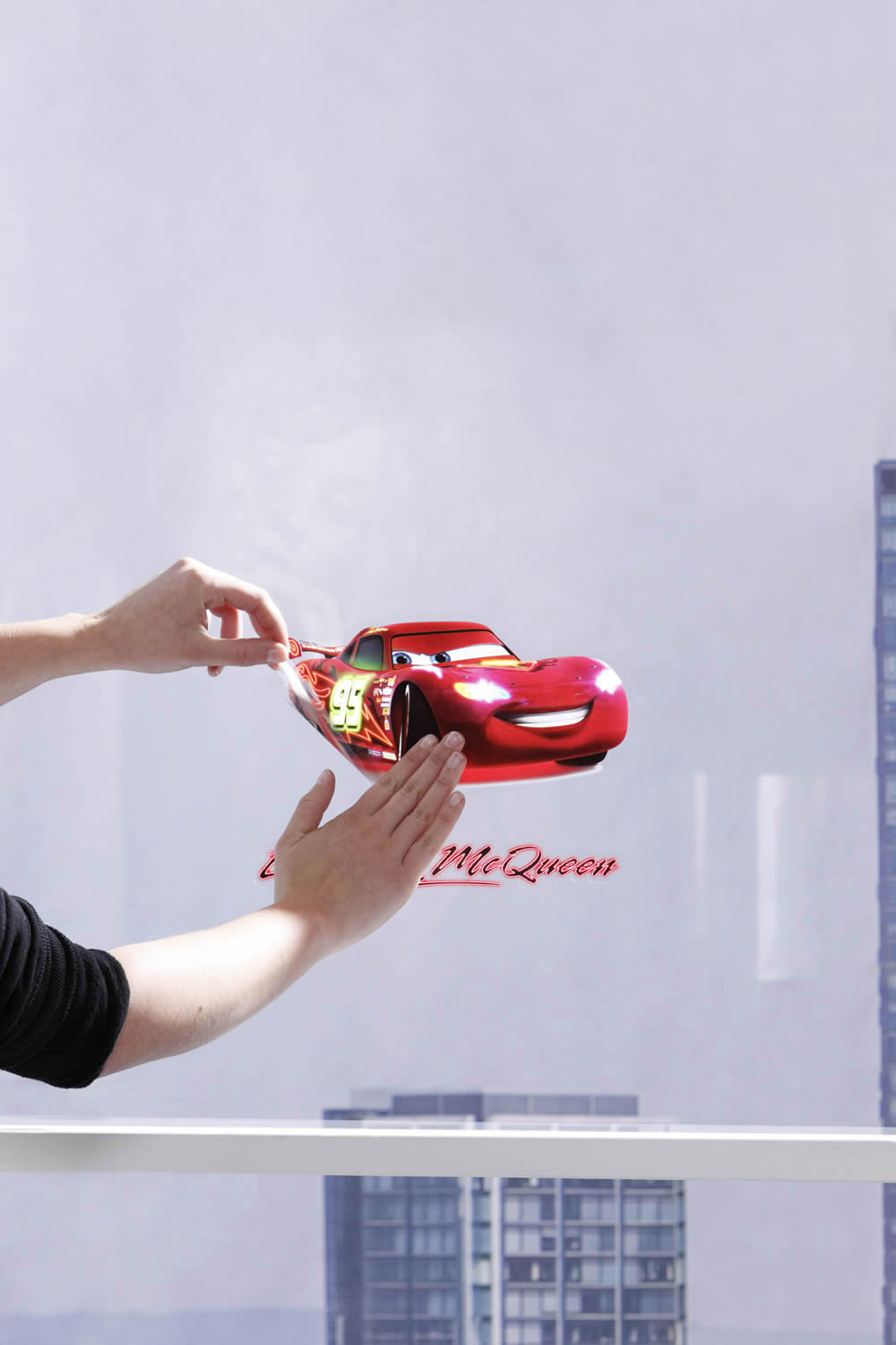 Diese Cars Fenstersticker sind selbsthaftend. Das Material ist selbsthaftende Adhäsiosfolie. Lightning McQueen und seine Freunde aus dem beliebten Kinderfilm Cars verschönen das Fenster im Kinderzimmer in bunten Farben.