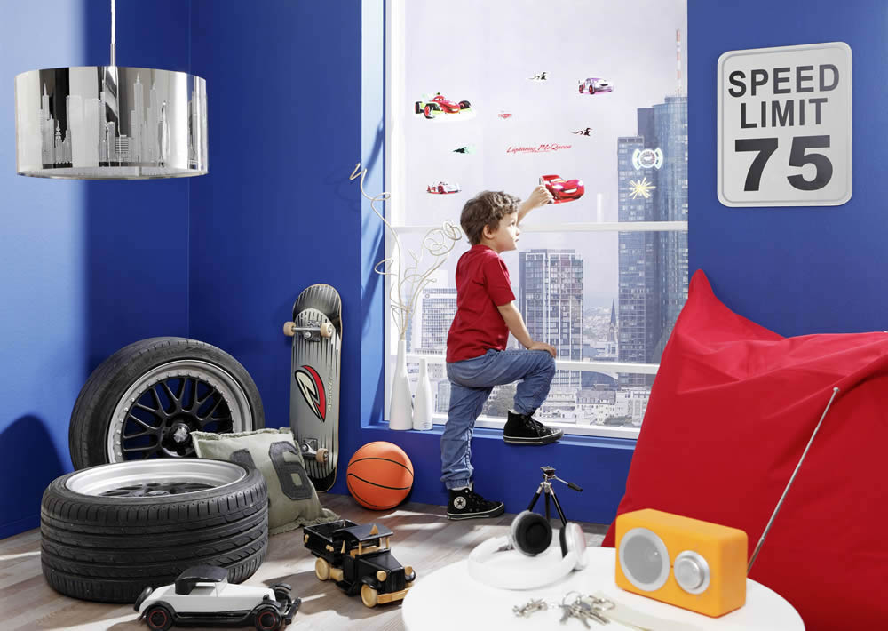 Das 12-teilige Fensterstickerset bringt die Figuren aus Cars als dekoratives Detail ins Jungszimmer. Mit diesen Stickern lassen sich die Fenster immer wieder neu gestalten.