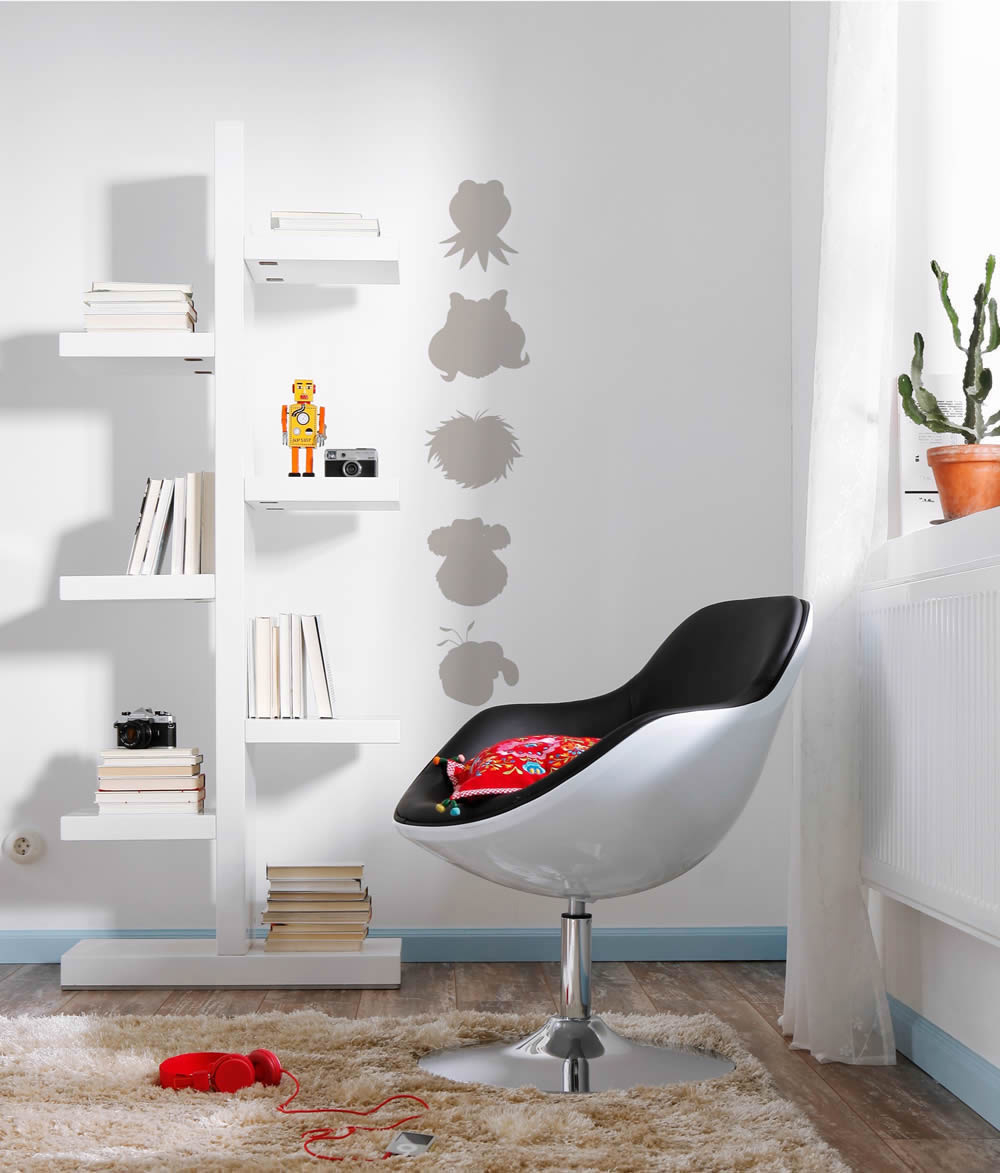 Dekorieren Sie die Kinderzimmerwand mit dem 5-teiligen Stickerset, das die Silhouetten von fünf verschiednen Muppets beinhaltet.