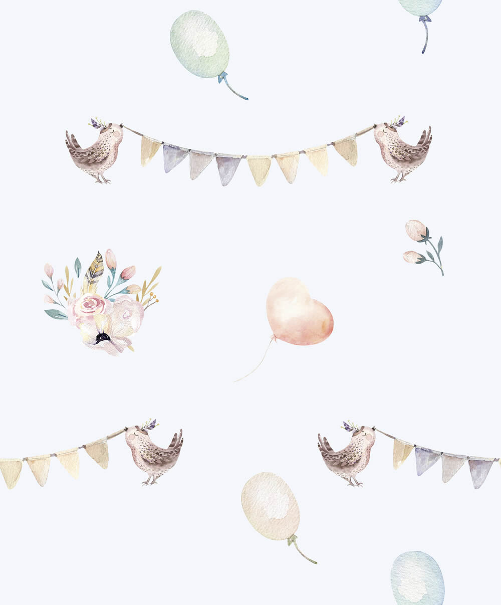 Produktinformationen "Blumen und Vögel Tapete hell blau und bunt Kids Walls 45892"
