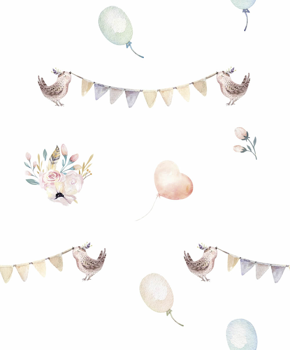 Blumen und Vögel Tapete hell blau und bunt Kids Walls 45892