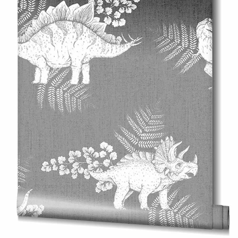 Dinos World Dunkel grau und weiß Tapete Kids Walls Marburg 45803