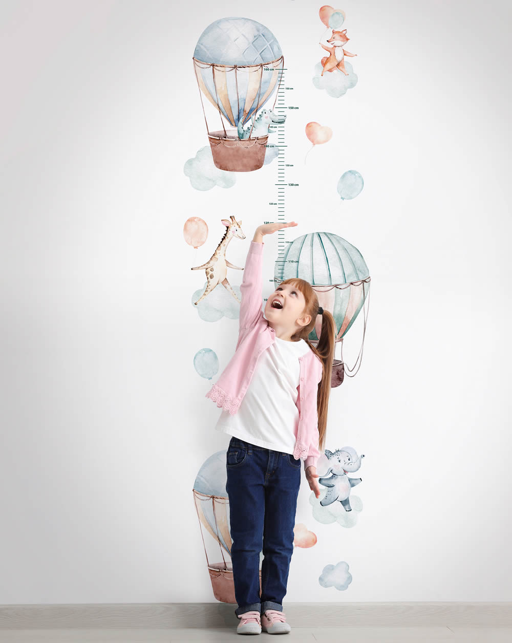 Giraffe und Heißluftballon Kindermesslatte Wandbild bunt Kids Walls 45867