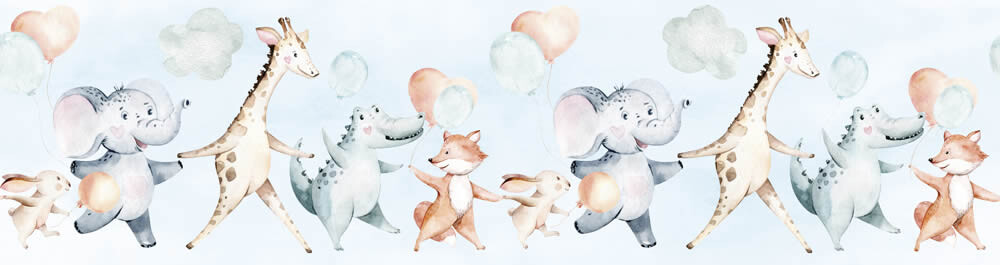 Hell blau und bunte Borte fröhliches Tierfest Kids Walls Marburg 45864