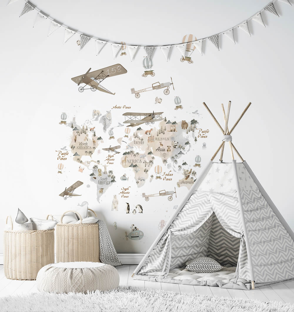 Kontinenten Karte Wandbild weiß und cream Kids Walls Marburg 45858