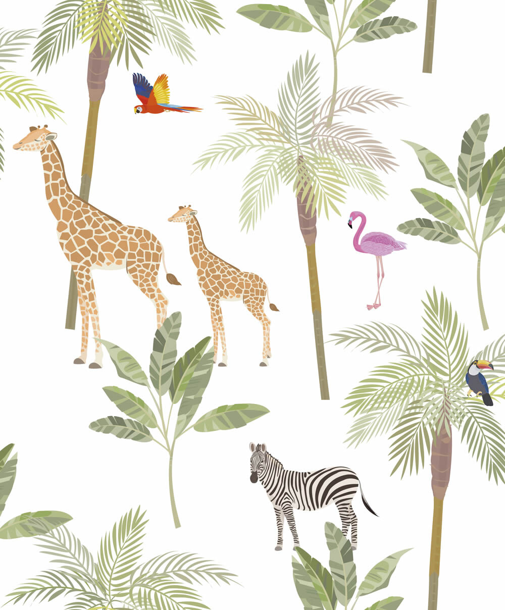 Borte 45881 aus der Kollektion Kids Walls mit Palmen und Flamingos und Dschungeltiere-Motiven im Farbton weiß und bunt. Bordüren können auf gestrichenen oder auch auf tapezierten Untergründen angewendet werden. Setzen Sie Akzente indem Sie die Wandfläche mit 2 Farben streichen und diesen Farbübergang mit einer Bordüre überdecken. Alternativ können Sie die Bordüre auch als optische Unterteilung mittig, auf Augenhöhe der Kids, im oberen Drittel oder im unteren Drittel auf der Wandfläche anbringen. Lassen Sie Ihrer Gestaltungsfreiheit freien Lauf. Mit dieser Borte spielen und schlafen Ihre Kinder in einem Kinderzimmer im farbenfrohen Look und Träumen von exotische Palmen. Die Oberfläche der Borte ist matt und die Struktur ist glatt. Das Format beträgt 5,00 x 0,27 m. Viele weitere Produkte von Marburg haben eine passende Optik zu dieser weiß und bunten Borte. Dekorieren Sie das Kinderzimmer tierisch in weiß und bunt und mit passenden Motiven für Kids. Themen-Kinderzimmer für Kids. Vlies-Borten lassen sich einfach und schnell verarbeiten und dank der Qualität von Marburg sind sie hochwertig und strapazierfähig. Dschungeltiere Borte wirken als toller Hingucker im Kinderzimmer und zur Ergänzung bietet dieser Hersteller viele zum Motiv passende Tapeten für Kids.