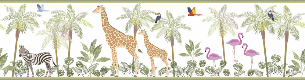 Produktinformationen "Palmen und Flamingos Borte weiß und bunt Kids Walls Marburg 45881"