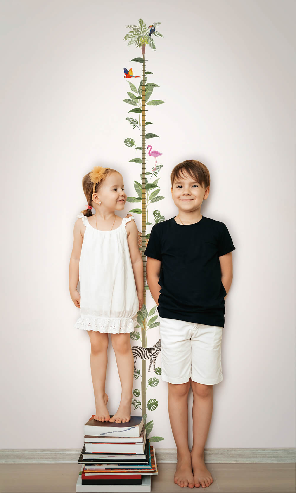 Wandbild 45884 mit Papagei und Palmenblätter und Giraffen und Flamingos-Motiven in weiß und bunt. Kids lieben Wandbilder, da sich damit einzelne Wände im Kinderzimmer mit ihren Lieblingsmotiven hervorheben lassen Planen Sie Ihr Kinderzimmer mit einem Wandbild aus dieser stilvollen Kinderkollektion Kids Walls. Struktur und Oberfläche sind glatt und matt und die Abmessungen sind 2,70 x 2,12 m. Gestalten Sie die Wände gemeinsam mit Ihrem Kind mit einem der Tapetenprodukte aus Vlies aus der Kollektion Kids Walls vom Tapetenhersteller Marburg. Dekorieren Sie das Kinderzimmer exotisch in weiß und bunt und mit passenden Motiven für Kids. Mit Wandbildern können Sie die Wandgestaltung schnell und einfach ändern. Der Kleister kann bei Vlies-Wandbildern direkt auf die Wand aufgebracht werden. Die Verarbeitung ist somit einfach und schnell. Lassen Sie einzelne Wände lebendig werden und nutzen Sie den Artikel 45884 für die Kinderzimmer-Gestaltung.