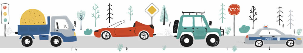 Eine bunte Borte 45845 zum beliebten Kinder-Thema Fahrzeuge und Polizeiwagen Jeep und Ampel lässt Kinderherzen höher schlagen. Lassen Sie Ihrer Kreativität feien Lauf. Tapezieren Sie Bordüren mittig auf der Wand, als Abtrennung zwischen 2 Farbflächen, um Möbel drumherum oder als Eyecatcher direkt über dem Bett auf Augenhöhe der Kids. Eine Borüre lässt sich einfach und schnell verarbeiten und sorgt im Handumdrehen für einen Look im Kinderzimmer. Gestalten Sie ein Themenzimmer für Jungs mit dieser Borte zum verspieltem Motto Straße und Bäume. Diese Borte hat eine matt und glatte Oberfläche und ist im Format 5,00 x 0,18 m. Stöbern Sie durch die Produktvielfalt von Marburg und entdecken Sie viele weitere passende bunte Tapeten und Wandbilder. Gestalten Sie die Wände kindgerecht und malerisch in bunt mit den Lieblingsmotiven Ihres Kindes. Bunte Borten bieten die Möglichkeit die Wände passend zu den Gardinen und Teppichen im Kinderzimmer zu gestalten. Die Wandklebetechnik ist ein großer Vorteil von Borten aus dem Material Vlies. Fahrzeuge Borte wirken als toller Hingucker im Kinderzimmer und zur Ergänzung bietet dieser Hersteller viele zum Motiv passende Tapeten für Kids.