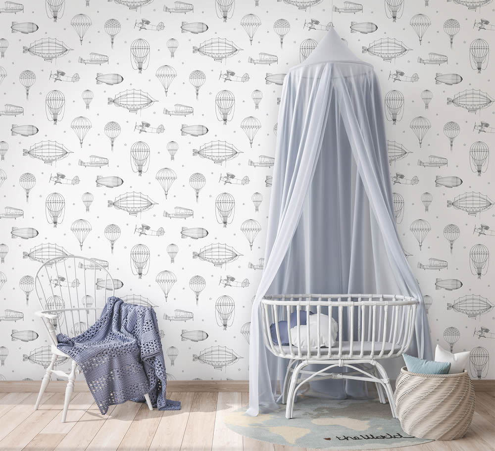 Sterne Fallschirmspringer Zeppelin Tapete weiß und schwarz Kids Walls 45827