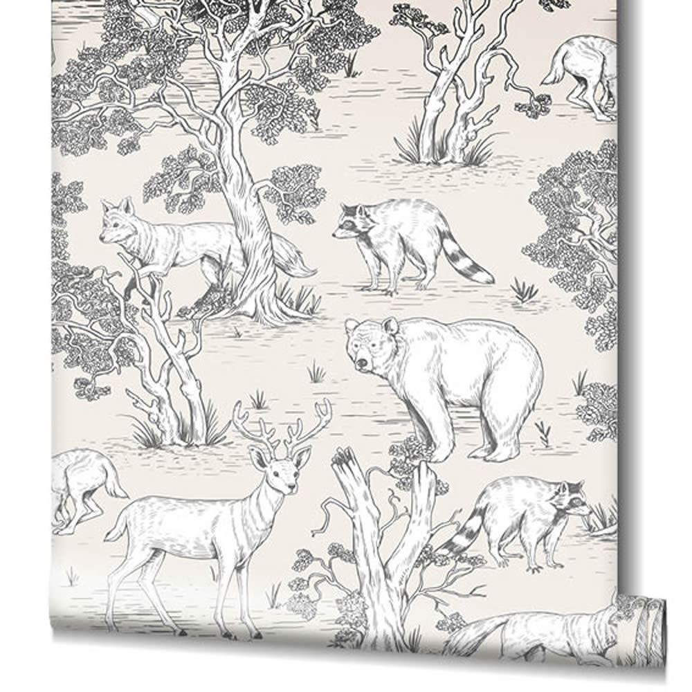 Waldtiere Bäume gezeichnet Beige grau Tapete Kids Walls Marburg 45809
