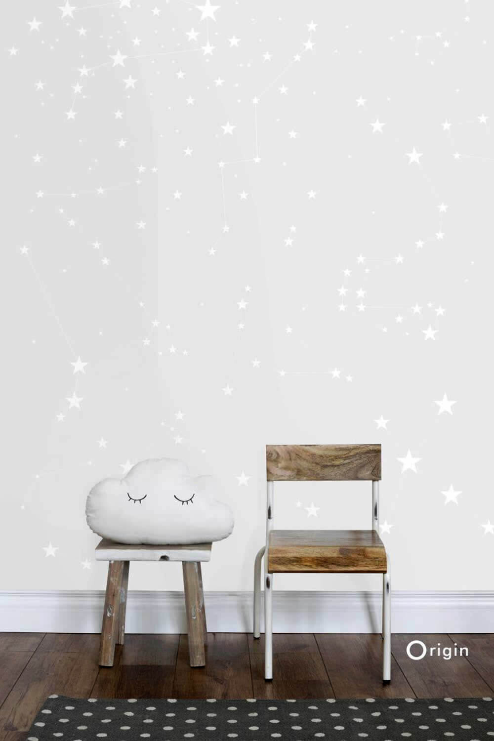 186 x 279 cm, Breite einer Bahn: 46,5 cm, 4 Bahnen, matt, Babyzimmer, Sterne, weiß, hell-grau, glatt, Wandbild, Vlies
