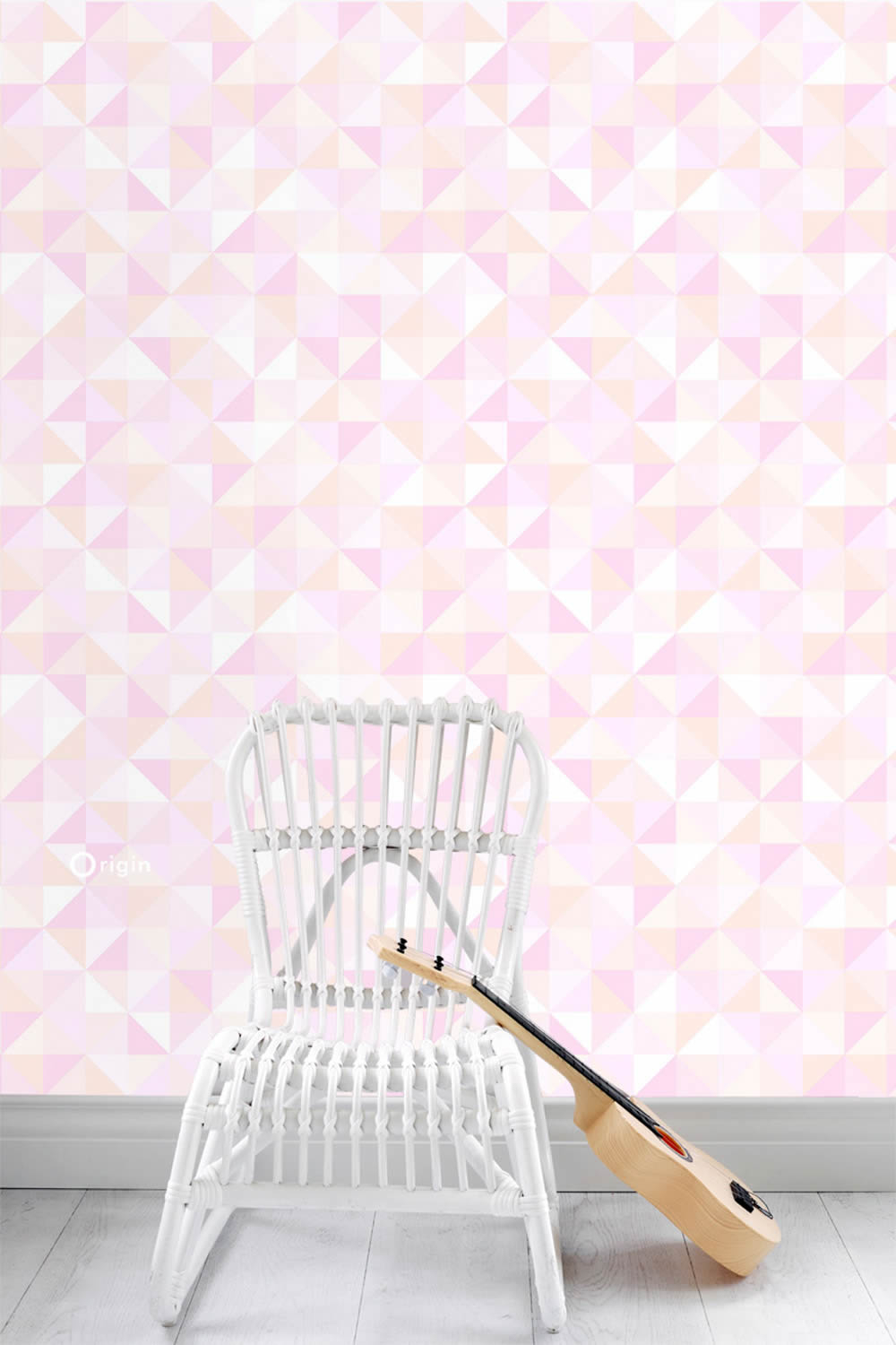 Die niedliche Vliestapete mit kleinen Dreiecken in sanften Rosa-und Orangetönen lässt Mädchenaugen strahlen.