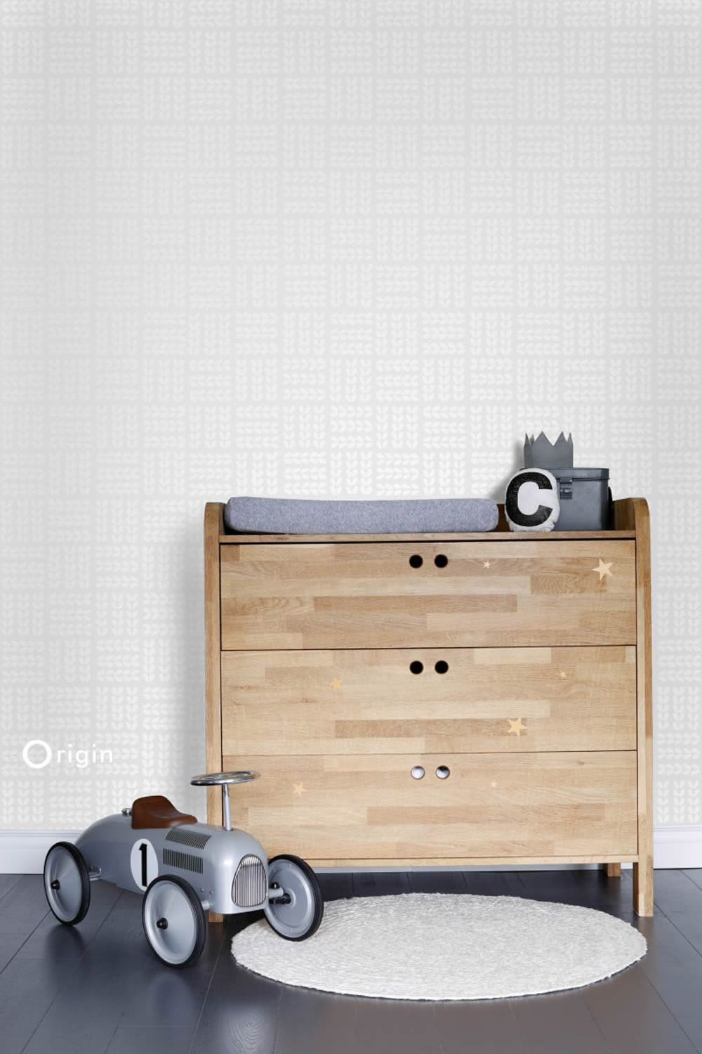 Vliestapete, Blätter, creme-weiß, perlmutt, matt/glänzend, glatt, Babyzimmer
