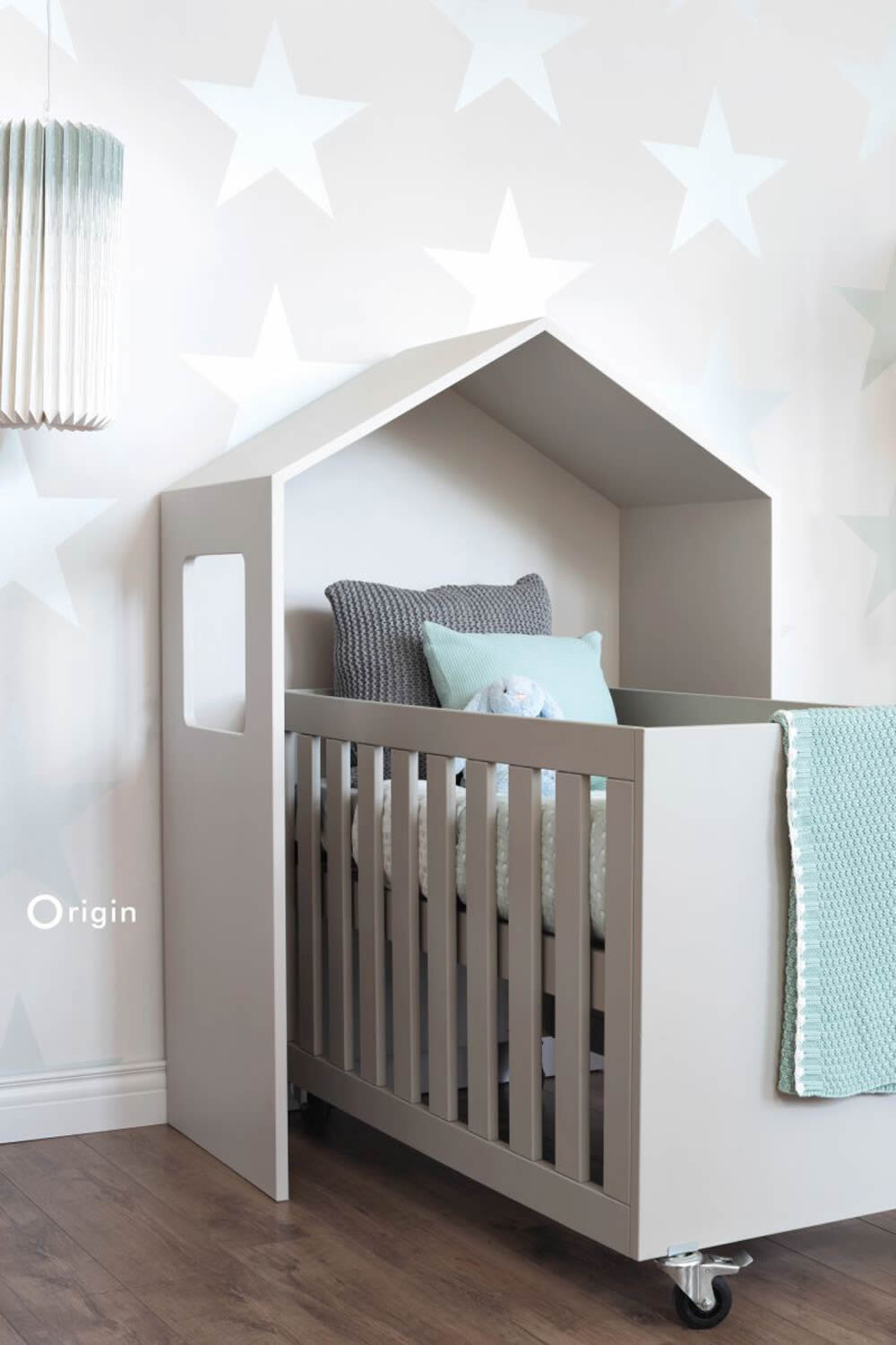 Schaffen Sie ein natürliches Ambiente im Babyzimmer durch die mint-grüne Vliestapete mit feiner Struktur.