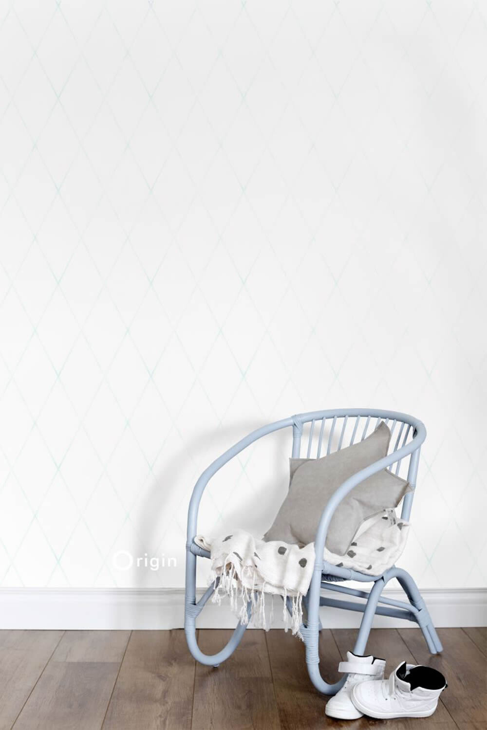 Creme-weiße Rauten mit rosa Umrandung wirken im Babyzimmer niedlich und verspielt.
