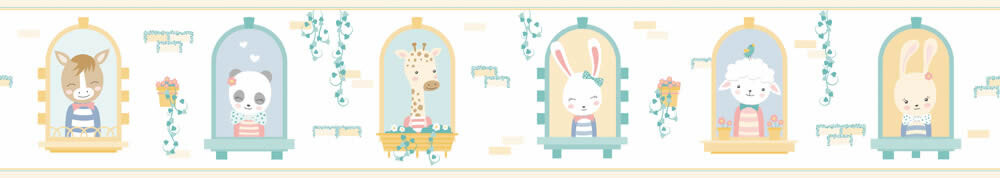 Produktinformationen "Musterstück Tiere am Fenster Borte weiß Pippo Rasch Textil 104731"